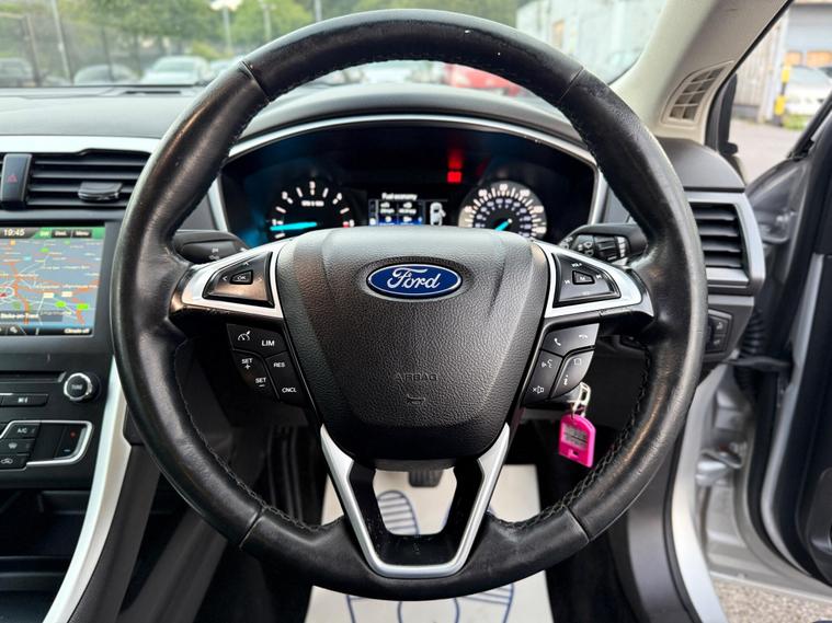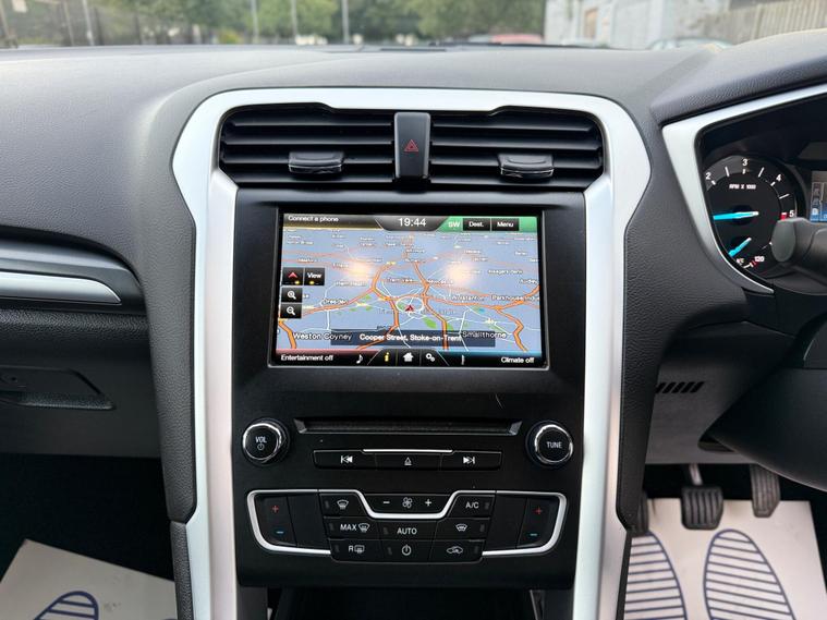 With only two previous owners, this 2015 Ford Mondeo TDCi Zetec is a great example of a reliable and well-maintained vehicle. The Zetec trim complements the Mondeo's reputation for practicality and comfort. Equipped with a 2.0L diesel engine and meeting Euro 6 emission standards, this Mondeo is ready for modern driving. Enjoy a comfortable cabin environment with dual-zone electronic automatic temperature control, including climate control and independent rear air conditioning. Stay connected on the move with Bluetooth audio streaming.The Mondeo's large boot space makes it more practical than similar vehicles, easily accommodating luggage, shopping, or equipment for hobbies. The car's acceleration, reaching 0-62mph in 9.3 seconds, means that it is quicker than other similar vehicles, offering a responsive and engaging driving experience..