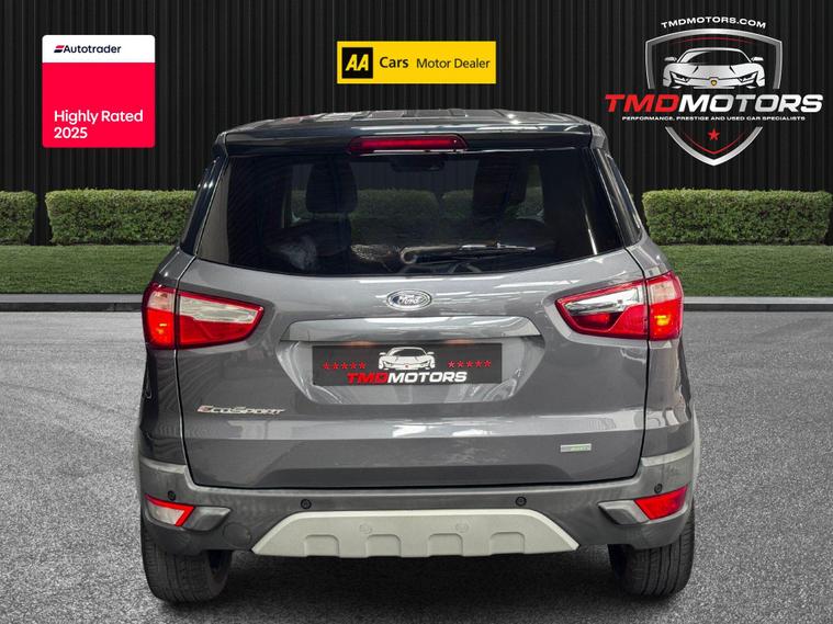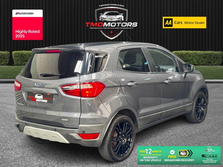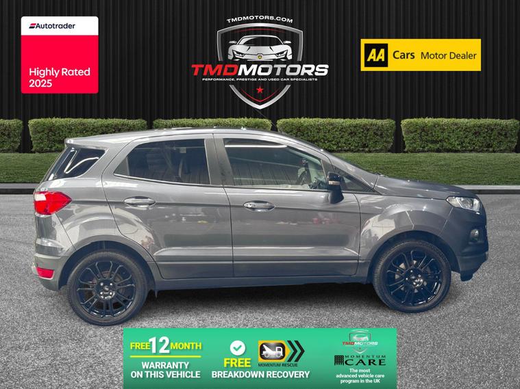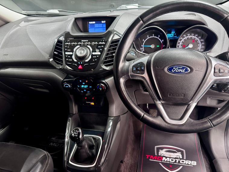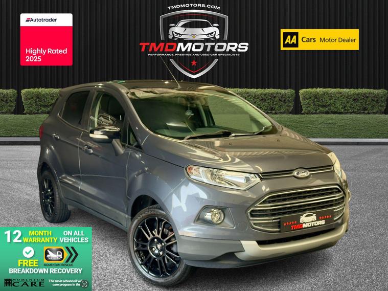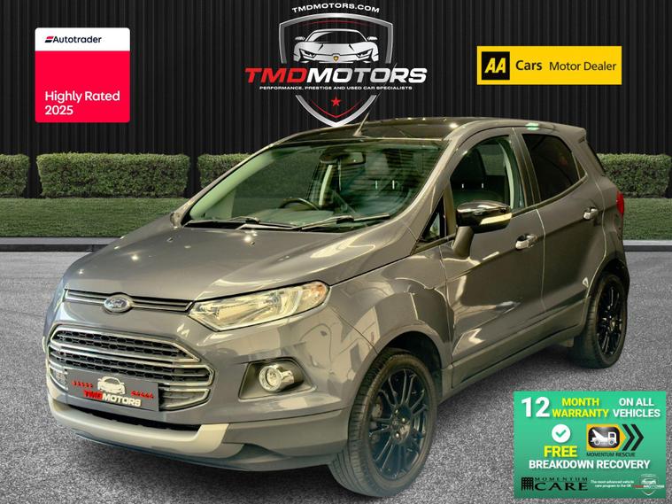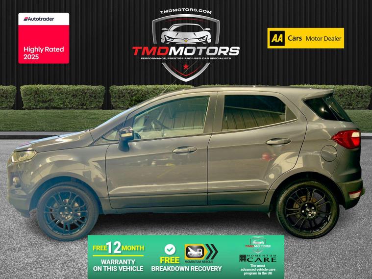 This sporty and refined Ford EcoSport 1.0 EcoBoost Titanium S in elegant grey offers the perfect blend of compact SUV practicality, sporty performance, and premium features. With just 32, 200 miles, it’s a well-maintained, stylish StationWagon that’s both fun to drive and easy to live with.Powered by the award-winning 1.0 EcoBoost engine, this EcoSport delivers impressive performance without compromising fuel efficiency – ideal for city use and weekend getaways.? Key Details:✅ Engine: 1.0L EcoBoost 140PS – punchy, responsive, and economical✅ Transmission: Manual – smooth and precise✅ Mileage: 32, 200 miles – low mileage, carefully looked after✅ Colour: Sleek Grey ? – understated and modern✅ Body Style: 5-Door StationWagon – compact yet spacious SUV design✅ Euro 6 Compliant – ULEZ friendly? Added Benefits:? 12 Months Warranty – provided by Momentum Warranties, the UK’s most advanced vehicle protection program? 12 Months FREE AA Breakdown Cover – added confidence on the road? Machine Polished & Professionally Valeted – showroom condition inside and out ✨✅ MOT Ready – fully inspected and road tested by our team? Titanium S Specification Includes:? Rear Parking Sensors – park with ease and confidence? Climate Control – maintain the perfect cabin temperature? Half Leather Trim – premium feel with a sporty touch? 17'' Alloy Wheels – striking design with excellent road presence? Tyre Repair Kit – peace of mind in case of a puncture? Privacy Glass – sleek look and added rear passenger comfort? Why Choose This Ford EcoSport Titanium S?? High-Spec Titanium S Model – Packed with Features? Low Mileage – Only 32, 200 Miles? Sporty Looks, Practical Size, Efficient Engine? Perfect for City Driving or Weekend AdventuresThis Ford EcoSport Titanium S offers the perfect crossover experience – elevated driving position, great fuel economy, and standout style.? Now available at TMD Motors – contact us today to arrange a test drive!? Call now – this one won’t be around for long! ?.
