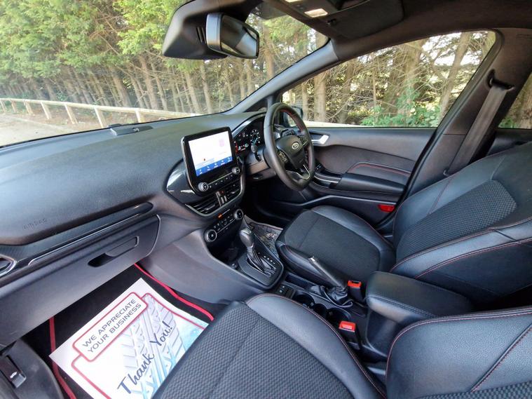 Automatic Ford Fiesta 1.0T EcoBoost ST-Line in a great condition - The previous owner well maintained the car - ULEZ free - The car was fully serviced last month - Full Service History - New Tyres - 2x keys - HPI Clear // 12 months AA breakdown cover included// We offer the option of an extended national warranty of up to 3 years // Driveaway insurance available // PX Welcome // This 2021 Ford Fiesta ST-Line X Edition is ready to drive away. This model features a 1.0L petrol engine and boasts the ST-Line X Edition trim. The vehicle includes a leather gear knob and LED projector headlights, complete with daytime running lights and automatic activation. For optimal comfort, it has electronic automatic temperature control, which includes climate control.The B and O PLAY in-car audio premium sound system, coupled with the Ford SYNC 3 navigation system and FordPass Connect, ensures you stay connected and entertained on every journey. This comprehensive system includes Android Auto, Apple CarPlay, and Bluetooth connectivity. The fuel economy is around 53 mpg, which means lower running costs compared to similar vehicles. Acceleration from 0-62mph happens in 9.6 seconds, demonstrating its responsive performance..