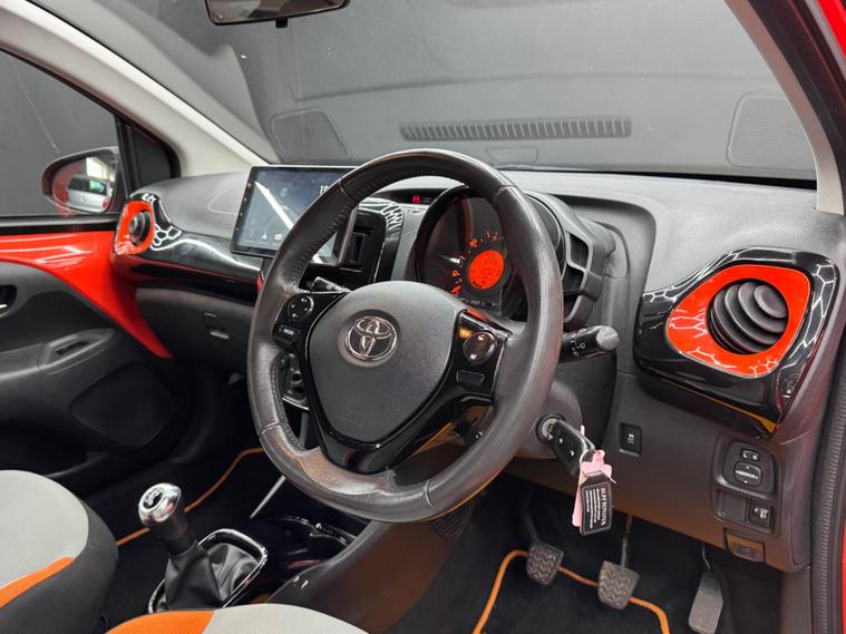 Here at Motor Gurus we are delighted to offer a Toyota AYGO 1.0 VVT-i x-cite. This vehicle is in immaculate condition inside and out. This specific vehicle is finished in a GLOSS ORANGE and is contrasted by a GREY/ ORANGE CLOTH interior. This vehicle comes included with: CRUISE CONTROL, TWIN CUPHOLDERS, USB PORT, CLIMATE CONTROL, ANDROID SCREEN, DAB RADIO, BLUETOOTH AUDIO, REAR PARKING CAMERA AND MUCH MORE! Our Toyota AYGO 1.0 VVT-i x-cite has come to us with FULL SERVICE HISTORY, 2 KEYS and is ONLY £20 TAX! We will also provide this vehicle with a 12 MONTH MOT as well as a FRESH OIL SERVICE before it leaves our premises (OTR)..