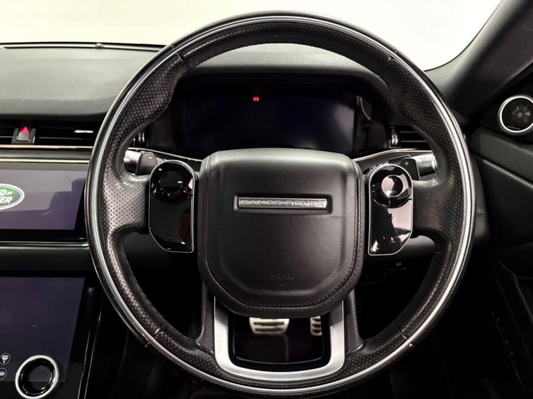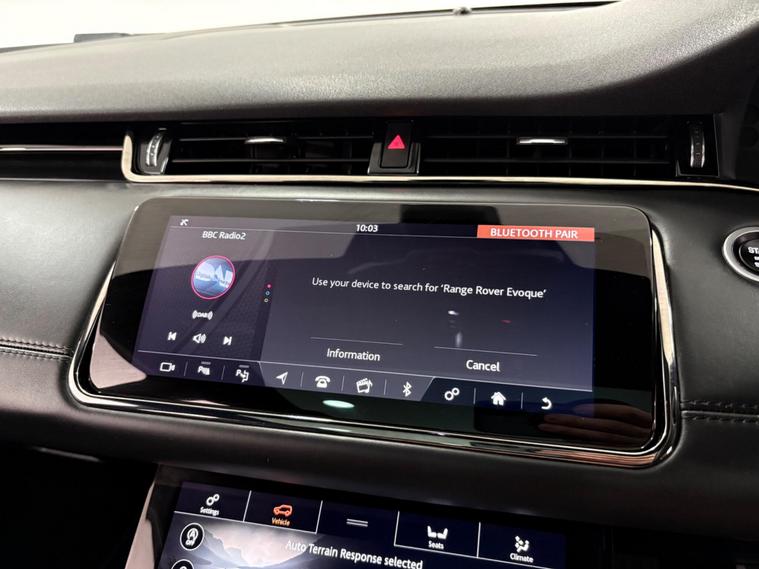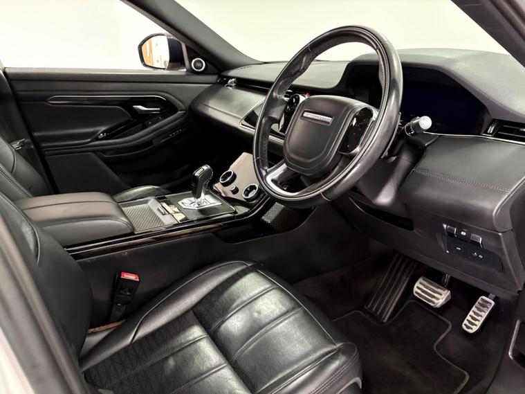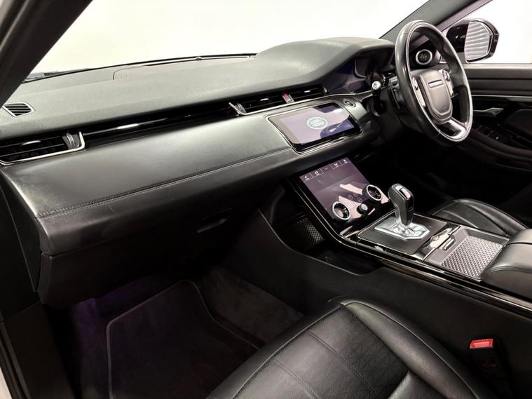 This 2019 Land Rover Range Rover Evoque P200 R Dynamic HSE boasts a full service history with services at 15-43k and will have another as part of our internal preparation. This stylish SUV features a 2.0 litre petrol engine, Four Wheel Drive and meets Euro 6 emissions standards. The R Dynamic HSE trim level offers a premium experience, enhanced by a fixed panoramic roof with a powered blind, 360 degree cameras for easier parking, and cruise control for a more relaxed driving experience. Stay connected on the go with Bluetooth connectivity.The Evoque P200 R Dynamic HSE is designed for performance and comfort, accelerating from 0 to 60 miles per hour in just 8.0 seconds. These highlights demonstrate how this particular vehicle offers a superior driving experience compared to others in its class, combining advanced technology with the renowned capability and luxury associated with the Range Rover brand..