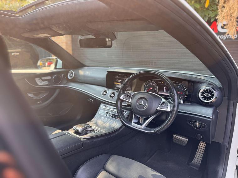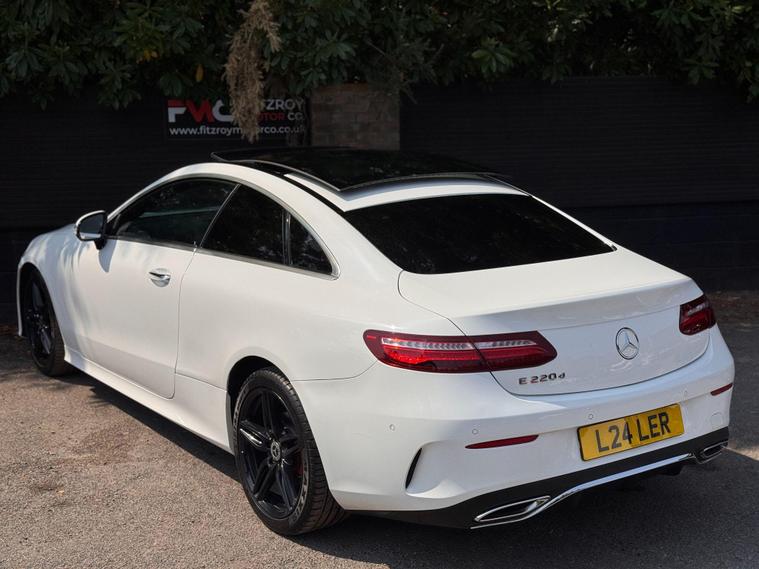 We are delighted to offer this Mercedes-Benz E-Class 2.0 E220d AMG Line Premium, a stunning luxury saloon with comprehensive service history and the renowned 9-speed automatic transmission, delivering both refinement and performance.Finished in elegant white with black alloys, red brake calipers, privacy glass, xenon headlights, and LED daytime running lights, this E-Class has a truly striking road presence. Frameless windows add a sleek and sporty touch to its premium design.Inside, the cabin is equally impressive, featuring leather heated seats with full electric adjustment and memory function, panoramic roof with tilt and slide feature, and electric steering wheel adjustment for maximum comfort. Technology highlights include Bluetooth audio, handsfree connectivity, DAB/FM/AM radio, cruise control with limiter, and an electric tailgate for convenience.This E-Class is the perfect blend of executive comfort, cutting-edge technology, and AMG styling — a real head-turner that has been very well maintained.At Fitzroy Motor Co, all our vehicles are HPI clear, mechanically inspected, and supplied with a fresh 12-month MOT where required. We also offer nationwide delivery from £149 and finance options from 10.9% APR with £0 deposit available.Part exchange welcome – contact us today to arrange a viewing or test drive. Call us on 01425318542..