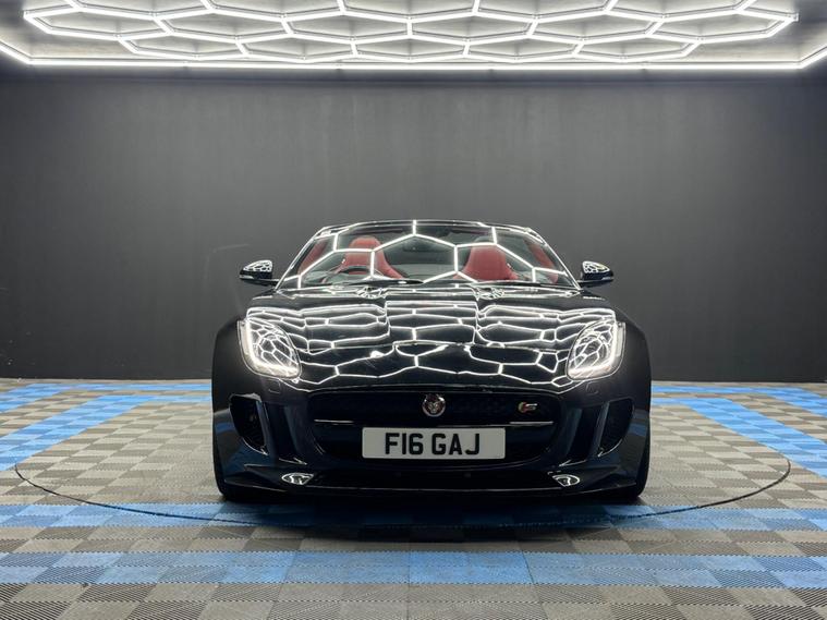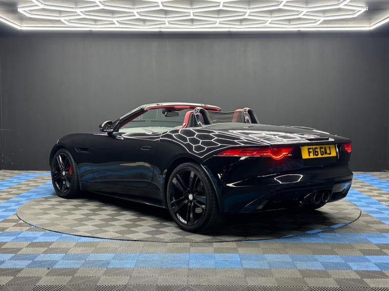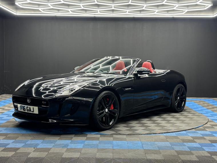 Here at Motor Gurus we are delighted to offer a Jaguar F-Type 3.0 V6 S Auto. This vehicle is in immaculate condition inside and out. This specific vehicle is finished in a GLOSS BLACK and is contrasted by a RED LEATHER interior. This vehicle comes included with: FRONT & REAR PARKING SENSORS, FRONT ELECTRIC/ MEMORY SEATS, MERIDIAN SOUND SYSTEM, CRUISE CONTROL, TWIN CUPHOLDERS, REAR SPOILER CONTROL, EXHAUST VALVE, KEYLESS START, CLIMATE CONTROL, FRONT HEATED SEATS, SAT NAVIGATION, TELEPHONE CONNECTIVITY, BLUETOOTH AUDIO, REAR PARKING CAMERA AND MUCH MORE! Our Jaguar F-Type 3.0 V6 S Auto has come to us with SERVICE HISTORY and 2 KEYS! We will also provide this vehicle with a 12 MONTH MOT as well as a FRESH OIL SERVICE before it leaves our premises (OTR)..