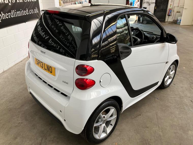 This 2013 Smart Fortwo MHD Pulse is a fantastic example, having been owned by just one person from new. This compact city car boasts a 1.0L petrol engine and comes with a 3 month warranty for your peace of mind. It also includes 12 months MOT provided on purchase, and a clear vehicle history check, ensuring its roadworthiness and a clean past. Inside, you'll find Air Conditioning with Automatic Temperature Control, including Climate Control, making every journey comfortable.The Smart Fortwo MHD Pulse is a standout choice, particularly for its impressive fuel economy of 66 mpg, which is significantly better than many other vehicles in its class. This efficiency, combined with its low CO2 emissions, makes it an economical and environmentally conscious option for urban driving. This well maintained vehicle offers a practical and enjoyable driving experience..