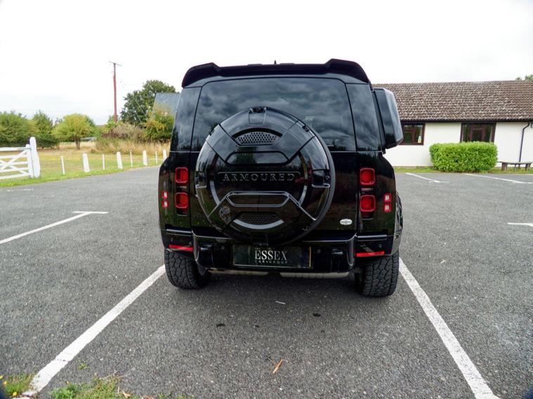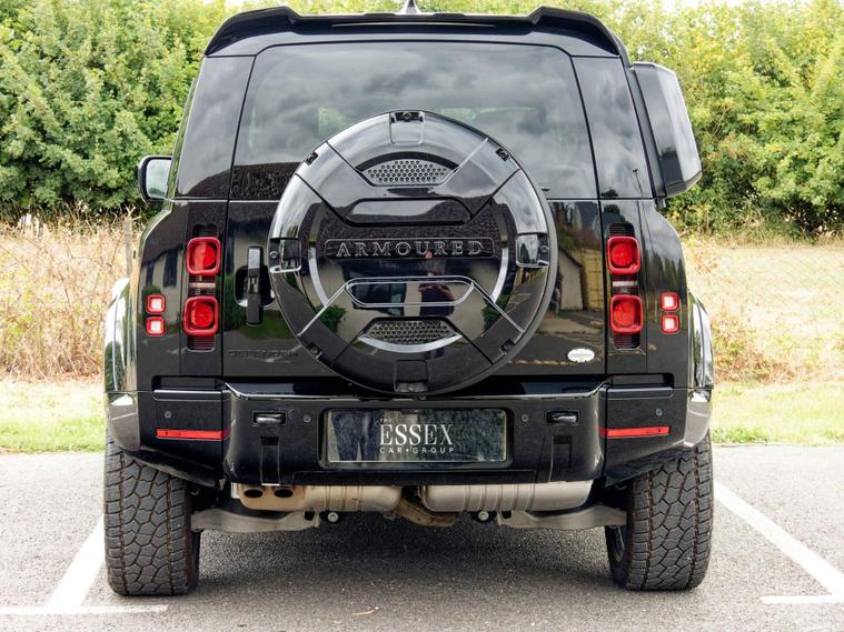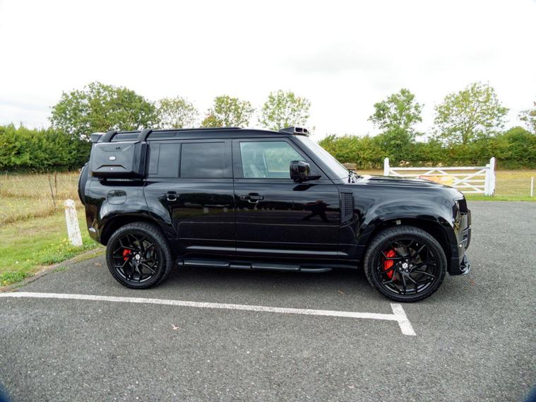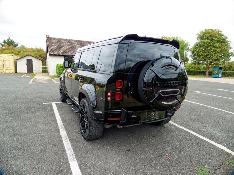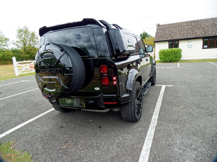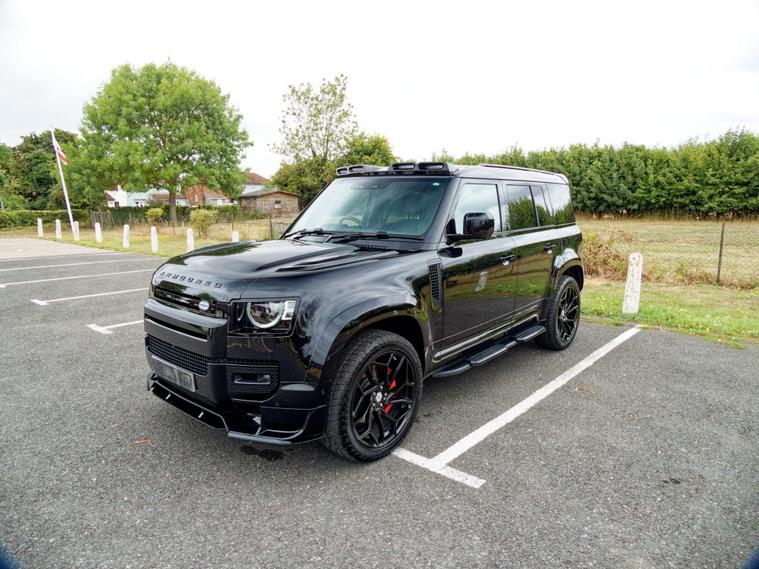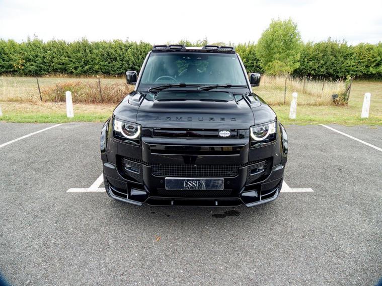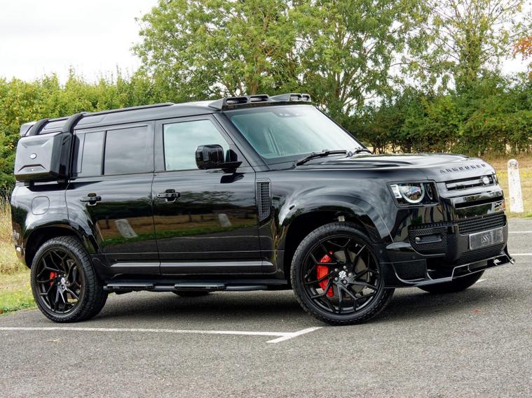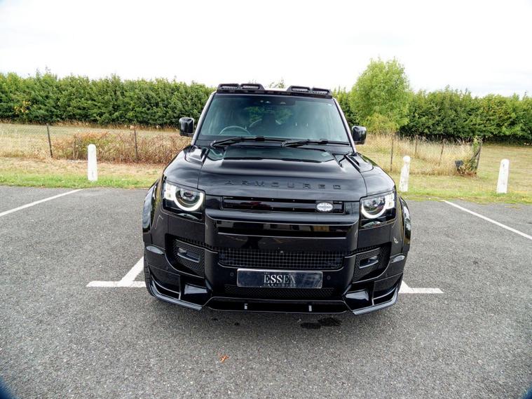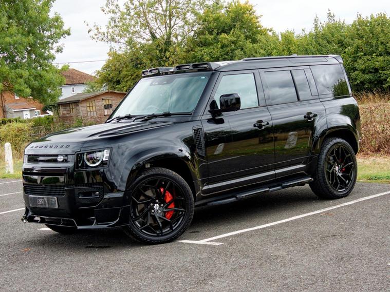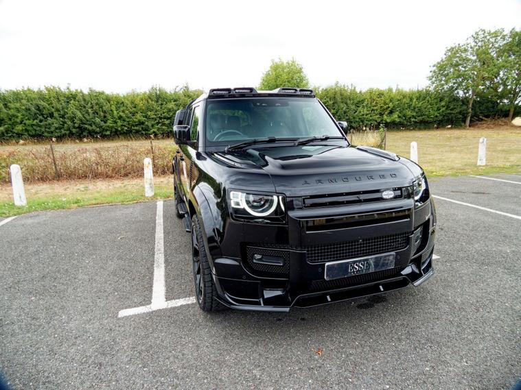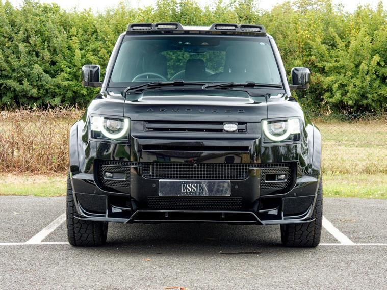 The Essex Car Group Ltd are delighted to offer this stunning Land Rover Defender ARMOURED EDITION 110 3.0 D350 MHEV X-Dynamic HSE in Santorini Black Interior in Full black leather Spec inc Full ARMOURED Body styling Inc WideTrack Body, ARMOURED Lightbar, ARMOURED SPOILER, 22'' ARMOUERED Gloss Black Alloys with Red calipers, Armoured Rear Wheel Cover, Matte Black Sidesteps, Meridian Sound, 360 cameras with PDC, Heated seats front, Heated Steering wheel, Panoramic Roof, Cruise control, 11.4'' Touch screen Sat Nav, with USB, DAB, Bluetooth, Fixed side steps, Android auto & Apple Carplay ready. Blind Spot Assist, Water Wading Aid, Side box, Traffic Sing Recogn./speed Limiter, Balance of manufacturers warranty. Finance available. Part ex welcome. Please check spec with a member of staff as Autotrader spec can be incorrect. Please call to arrange a viewing 01277517184 or 01277517184 (out of hours). We also purchase Kahn, Overfinch, Lumma, Hawke, Revere, Onyx, Aspire, Tank, Urban, Evolved, Exclusive, Stealth Pack, Ultimate Styling, Bespoke Bodykit, Please give our office a call for a quote today..