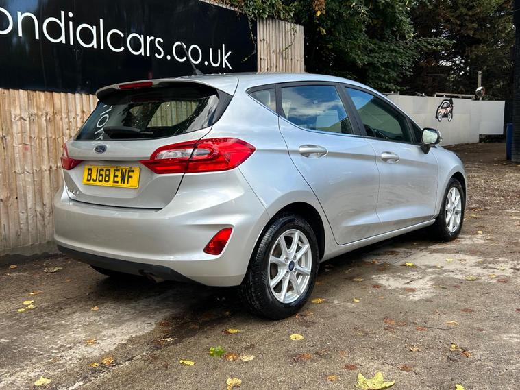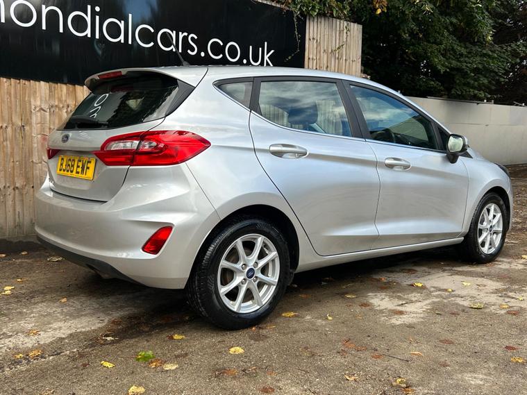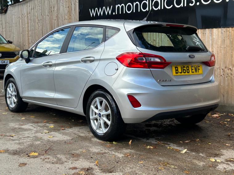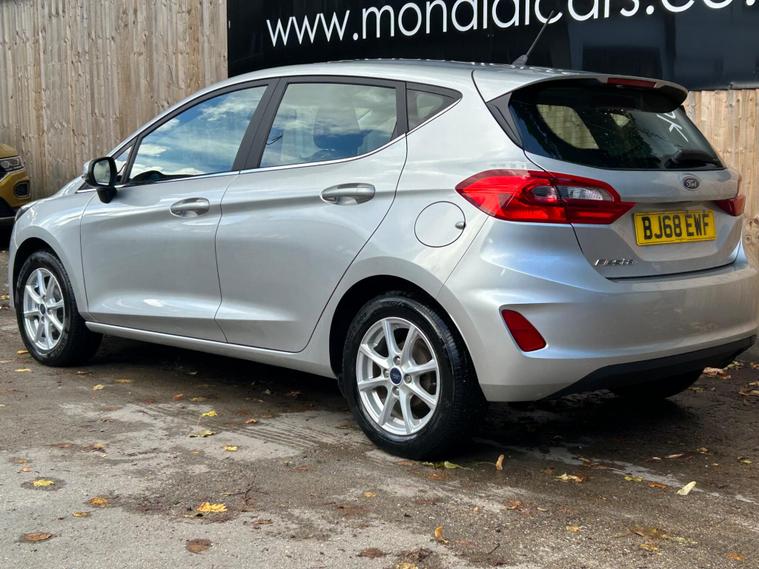 This 2018 Ford Fiesta Ti-VCT Zetec is a fantastic example, having been owned by just one careful keeper from new. Finished in a classic style, this popular hatchback is equipped with a responsive 1.1L petrol engine and meets the Euro 6 emission standards. Inside, you'll find manual air conditioning for your comfort, alongside a Ford DAB radio featuring Ford SYNC3, which seamlessly integrates with both Apple CarPlay and Android Auto, keeping you connected on the go. The NCAP Pack includes automatic headlights, which also feature an automatic on off function, providing added convenience and safety.This particular Fiesta Zetec offers excellent value, highlighted by its low insurance group, making it an economical choice for many drivers. Furthermore, its low CO2 emissions indicate a more environmentally friendly performance compared to similar vehicles. These factors combined with its single owner provenance and desirable features make this Ford Fiesta a compelling option for anyone seeking a reliable and well equipped compact car..