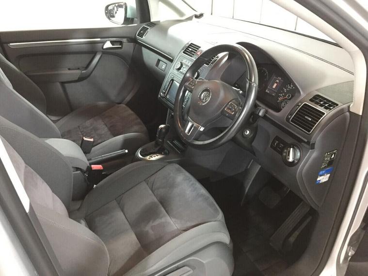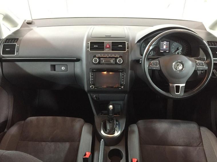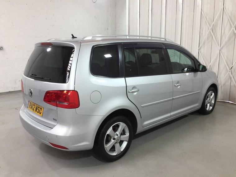 This Volkswagen Touran has 7 seats and is fitted with a 140 horsepower petrol engine and fully automatic transmission for combined economy of 42 MPG rising to 50 MPG for motorway use. It benefits from dual zone climate control air conditioning, cruise control, rear ISOFIX childseat points, tinted rear windows, black cloth interior trim, electric windows all around, remote central door locking and immobiliser, automatic Bi-Xenon headlamps, heated electric power-fold door mirrors, touch screen multi-media interface with FM and AM radio tuners, Satellite Navigation through Android Auto and Apple Car Play, Bluetooth handsfree telephone and audio playback. The rear seats all fold independently as required. Ready to drive away today. Registration: RA12 WSO.First used June 2012, distance driven 56, 678 miles.