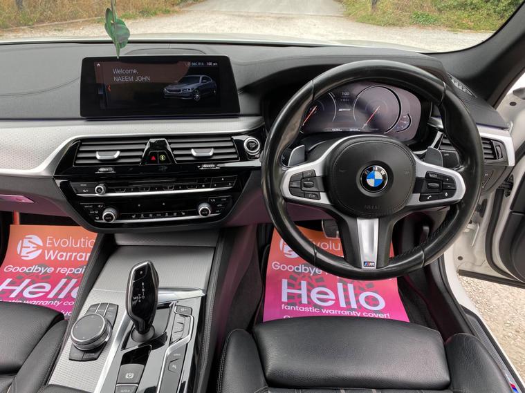 This 2018 BMW 5 Series 530e M Sport boasts a full service history, with its last service completed on 23rd May 2025 at 53, 252 miles, and has covered a low mileage of just 54, 300 miles for its age. This Euro 6 compliant plug-in hybrid, powered by a 2.0 litre petrol engine, offers an efficient and dynamic driving experience. It comes with a 6-month warranty and its MOT is valid until May 2026, ensuring peace of mind. Notable features include Bluetooth Hands Free with USB Audio Interface, Park Distance Control for both front and rear, a rain sensor with automatic headlight activation, heated front seats, and LED headlights.The M Sport trim enhances the already impressive BMW 5 Series, providing a sportier aesthetic and feel. The combination of its plug-in hybrid technology and the efficient 2.0 litre engine offers a compelling proposition for those seeking both performance and economy, setting it apart from many other vehicles in its class. The inclusion of advanced features like parking assistance and automatic lighting further elevates the driving experience, making this 530e M Sport a well-equipped and desirable option..