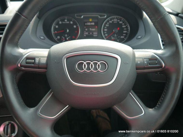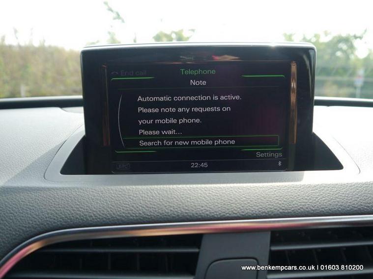 This 2013 Audi Q3 TFSI SE boasts exceptionally low mileage for its age, having covered just 41, 000 miles. This desirable compact SUV is equipped with a responsive 2.0 litre petrol engine and a capable Four Wheel Drive system, ensuring confident handling in various conditions. The SE trim level offers a refined driving experience, enhanced by features such as automatic activation headlights, a Bluetooth interface for mobile telephone preparation, dual zone electronic climate control for personalised comfort, and rear parking sensors to aid manoeuvrability.The Audi Q3 TFSI SE is a compelling choice, offering a blend of performance and practicality. Its impressive 0-62mph acceleration time of 7.8 seconds demonstrates its spirited nature, while its position in a low insurance group makes it an economical option for many drivers. These attributes, combined with its low mileage and desirable features, indicate that this Q3 offers excellent value and a superior ownership proposition compared to similar vehicles on the market..