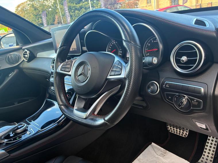 This 2017 Mercedes Benz GLC43 V6 AMG is presented in excellent condition, boasting a comprehensive service history. As a Euro 6 compliant model, it features a powerful 3.0L petrol engine paired with Four Wheel Drive, ensuring confident performance in all conditions. The Premium Plus package enhances the driving experience with a branded sound system, keyless entry, an opening panoramic sunroof, and memory seats. For added comfort, the front seats are heated, and the vehicle is equipped with Thermatic automatic climate control. Manoeuvring is made simple with the reversing camera and Active Parking Assist, which includes front and rear parking sensors.This GLC43 AMG offers impressive acceleration, reaching 0-62mph in just 4.9 seconds, a notable advantage over many similar vehicles. Its substantial towing weight of 2460 kg makes it a versatile choice for those needing to tow. Furthermore, the generous boot space provides ample room for luggage or shopping, and its position in a low insurance group makes it an economical option to own and run..