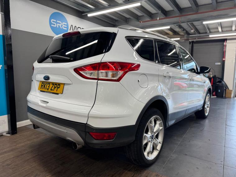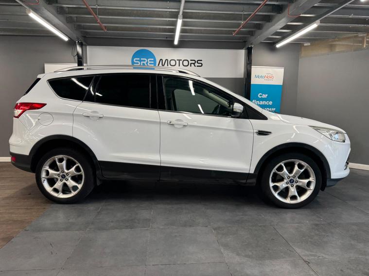 Ford Kuga 2.0 TDCi Titanium Diesel finished in metallic white with 100, 579 miles, is now available at SRE Motors. The vehicle is in great condition and has been well maintained by the previous owner. The vehicle has had a full vehicle inspection, it will also come with a 9 month minimum MOT, 3 months warranty and 12 months breakdown cover. This 2013 Ford Kuga TDCi Titanium offers a superb blend of style and practicality, making it an excellent choice for those seeking a reliable and well equipped family car. Powered by a robust 2.0L diesel engine, this model delivers impressive performance while also achieving an outstanding fuel economy of 53 miles per gallon. Inside, you'll find a comfortable and convenient cabin featuring dual zone electronic automatic air conditioning, ensuring a pleasant environment for all occupants. For added comfort, both the driver and passenger seats are heated, perfect for those colder mornings.The Kuga TDCi Titanium also boasts a range of modern features designed to enhance your driving experience. Stay connected on the go with Bluetooth handsfree and voice control, allowing you to manage calls and music without taking your hands off the wheel. Automatic headlights provide added safety and convenience, illuminating the road ahead when needed. Furthermore, this vehicle benefits from a low insurance group and low CO2 emissions, indicating that it is more economical to own and run compared to many similar vehicles. The front passenger seat also offers manual fore and aft adjustment for personalised comfort.Contact us today to arrange a viewing, arrange finance, reserve this vehicle or for anymore information..