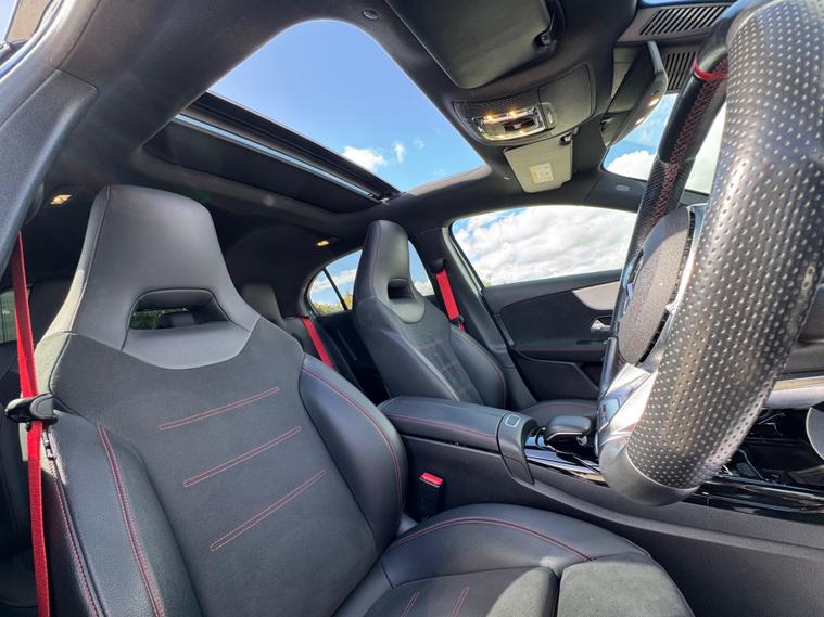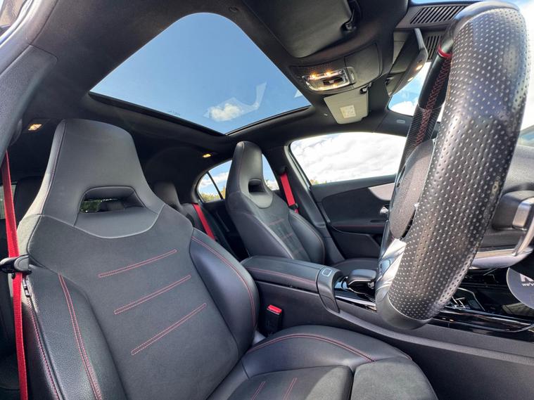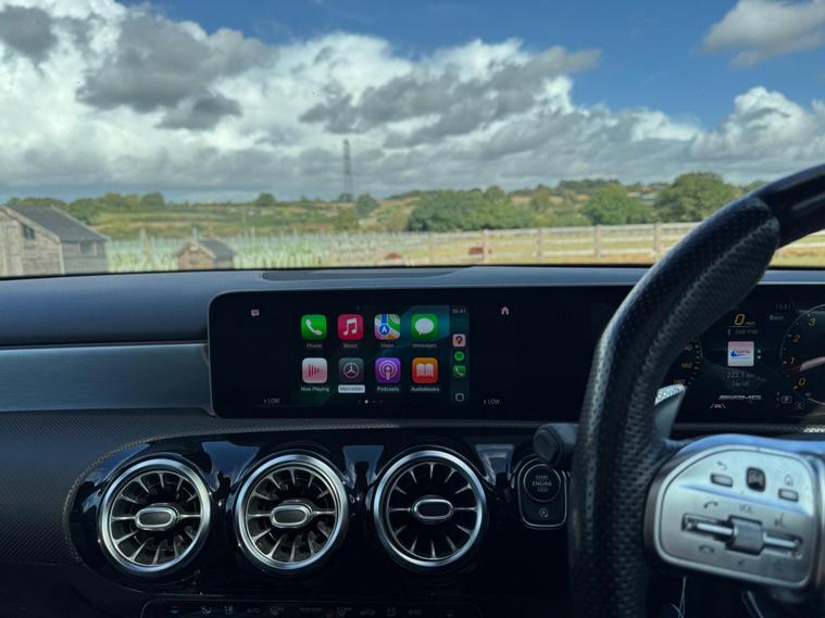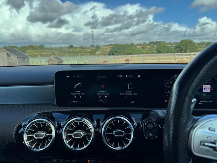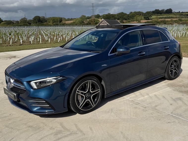 This Stunning Mercedes-Benz A Class 2.0 A35 AMG (Premium Plus) comes finished in Metallic Denim Blue with 18-inch AMG 5 Twin Spoke Alloy Wheels. Inside is Spacious, Stylish and Modern an 10.25-inch Colour Touch Screen Display. DAB Radio, A/C Climate Control, Bluetooth, Front and Rear Parking Sensors, Reverse Parking Camera, Front Heated Seats, Suspension with Adaptive Damping system, Seat Kinetics, Sliding Open Panoramic Roof, Multi Colour Ambient Interior Lighting, Smart phone Integration AppleCarPlay and Android Auto it is a Perfectly Well Kept Hatchback. This Stunning Vehicle comes with Full Mercedes Service History, 12 Months MOT and 3 Months Warranty. 2 KEYS and is ULEZ COMPLIANT. HPI CLEAR and Finance Available.