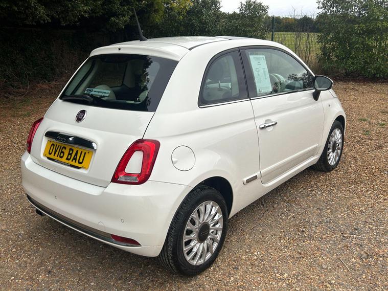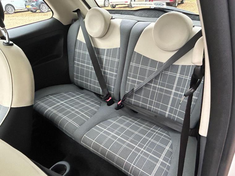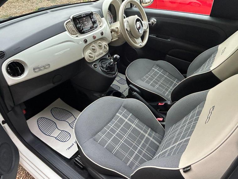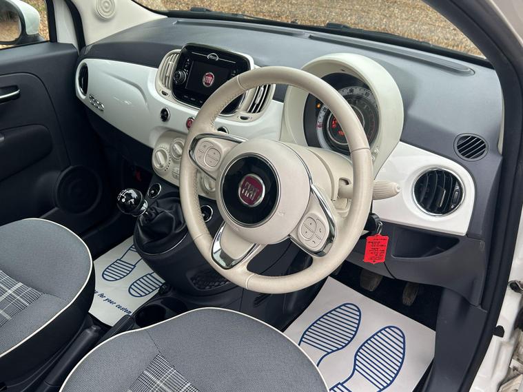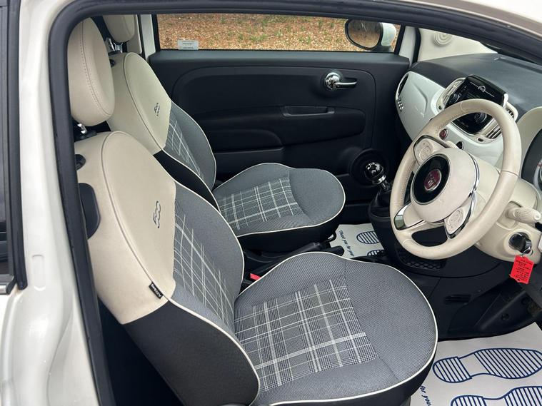Fiat 500 1.2 Lounge in White with Grey Interior. 1242cc, 5 Speed, Manual. £20 Road Tax. Comes with Handbooks, Service Book, Spare Key and Locking Wheel Nut. Specification includes: Aircon, Bluetooth Phone & Music, Rear Parking Sensors, Remote Alarm/Central Locking, Floor Mats, Electric Mirrors, Rear Washwipe, Start/Stop Functionality, Electric Windows, Radio, 12v Socket, Aux Socket, USB Charging Point. We are an AA Approved Dealer, 12 Months free AA Membership included on all our vehicles as well as a free AA History Check. 100% Finance options available with no administration fee and low interest rates, subject to status. Please ring for details. Part Exchange Welcome. Extended Warranties Available..