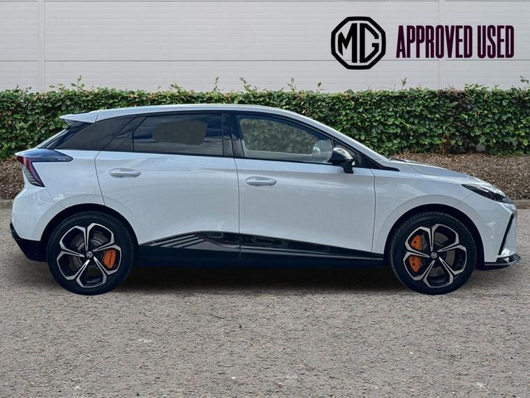 This 2025 MG MG4 XPOWER is a remarkable electric vehicle, boasting a single owner from new. As a Four Wheel Drive model, it offers an impressive 0-60mph acceleration time of just 3.7 seconds, showcasing its dynamic performance. Inside, you'll find a heated steering wheel and heated front seats for added comfort, alongside the convenience of Apple CarPlay. Safety and ease of parking are enhanced by a 360 Degree Parking Camera and Blind Spot Monitoring. This MG4 also features a generous boot space, making it practical for everyday use.The MG4 XPOWER's electric powertrain is powered by a 64 kWh battery, providing a maximum range of 239 miles on a full charge. Recharging at home using a 7kW charger will take approximately 9 hours and 26 minutes, while rapid public charging can replenish the battery from empty to 80% in as little as 34 minutes. These charging times and the rapid acceleration highlight how this MG4 XPOWER offers a superior electric driving experience compared to many other vehicles in its class..