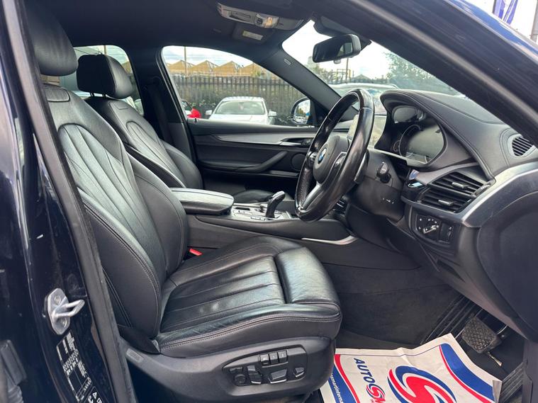 A STUNNING EXAMPLE WITH PRO NAV - REVERSE CAMERA - HARMON KARDON SOUND SYSTEM - HEAD UP DISPLAY - MEMORY FUNCTIONAL SEATS - ELECTRIC FOLDING MIRRORS - LED DRL - PRIVACY GLASS - 20'' BLACK ALLOY WHEELS - FULL BLACK LEATHER SEATS - HEATED SEATS - CONNECTED DRIVE - SPORT-SPORT+-COMFORT MODE - INTERIOR AMBIENT LIGHTING - This 2018 BMW X6 40d M Sport boasts a clear vehicle history, offering peace of mind for its next owner. Powered by a robust 3.0L diesel engine and featuring Four Wheel Drive, this Euro 6 compliant model delivers impressive performance. The M Sport trim enhances its appeal, complemented by striking 20in M Double Spoke Style 469M Jet Black alloy wheels. Convenience is key with the Comfort Access System, allowing for keyless entry, and the fully electric towbar, ready for your towing needs. Inside, you'll find supportive Lumbar Support for both the driver and front passenger, alongside comfortable front seats.Experience exhilarating acceleration with a 0-62mph time of just 5.8 seconds, showcasing the dynamic capabilities of this X6.3 MONTHS COMPREHENSIVE WARRANTY EXTENDABLE UP TO 3 YEARS | 12 MONTHS AA BREAKDOWN COVER | £0 DEPOSIT FINANCE AVAILABLE| BOOK YOUR TEST DRIVE NOW BY CALLING US ON 01582232076At our dealership, we take pride in offering you the best car-buying experience possible. Our vehicles undergo rigorous pre-inspection and are prepared to the highest standards before being offered for sale. Our commitment to quality is reflected in our 3-month comprehensive warranty and 12 months of AA breakdown cover. We also offer finance facilities with £0 deposit, part exchange options, and many more services to make your purchase hassle-free. With over 16 years of experience, we have earned the trust of our customers, who have rated us 5 stars. You can also book a free test drive to help you make an informed decision before purchasing your new car. We are always available to assist you with your car-buying needs, and you can reach us on WhatsApp chat at 01582232076..