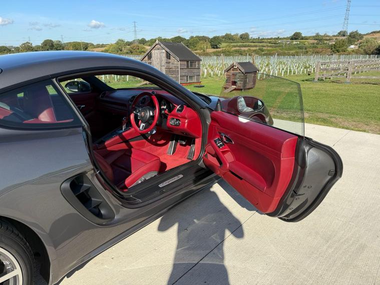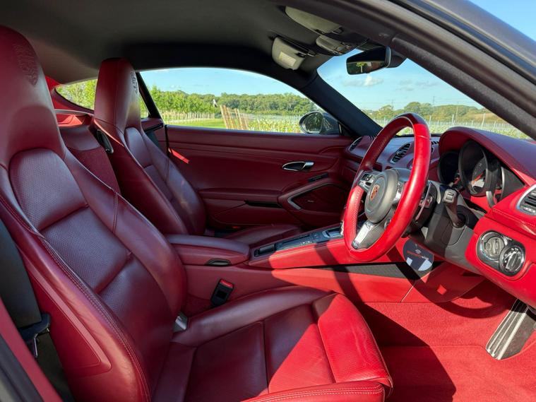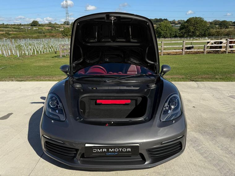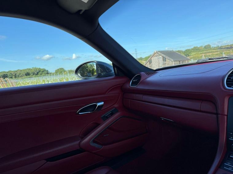 This Stunning Porsche 718 Cayman 2.5T S PDK is beautifully presented in Agate Grey which has been ceramic coated, complemented by 20-inch Carrera Classic Alloy Wheels. The luxurious Bordeaux Red leather interior is both stylish and modern, centred around a 7-inch colour touchscreen PCM display and an array of premium features. Highlights include the Sport Chrono Package with Dynamic Transmission Mounts, 14-way fully electric sports seats, heated multifunction steering wheel, heated seats, and climate control A/C. Tech and convenience features such as Digital Radio, Bluetooth, SAT NAV, Apple CarPlay & Android Auto, front & rear parking sensors with reversing camera complete the experience. An outstanding example of Porsche engineering. This Stunning vehicle comes with a full service history, 12 months MOT, 3 months warranty, 2 keys, and is ULEZ compliant & HPI clear. Finance is also available. Total Price of Optional Equipment Extras £17, 781.