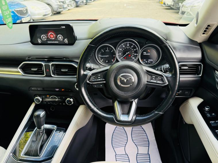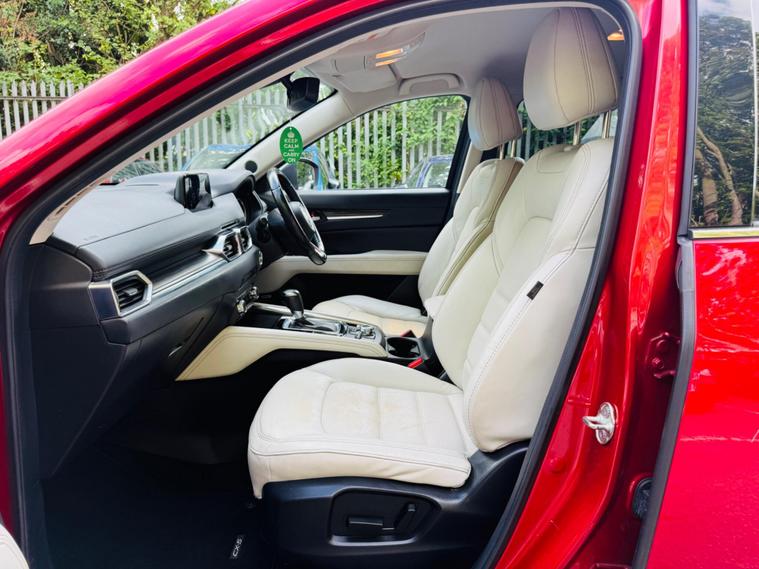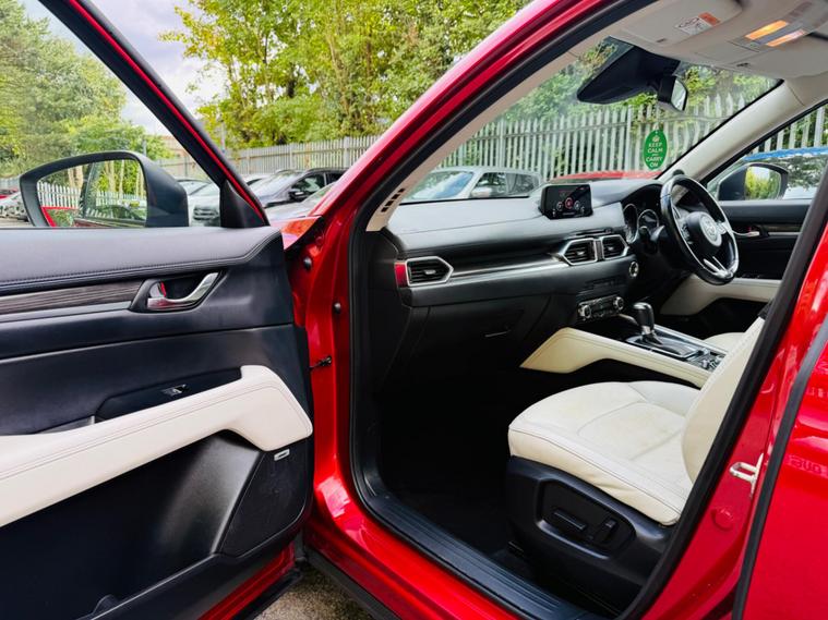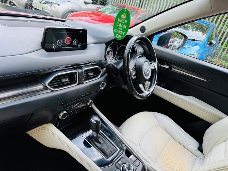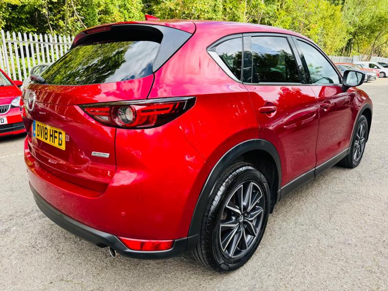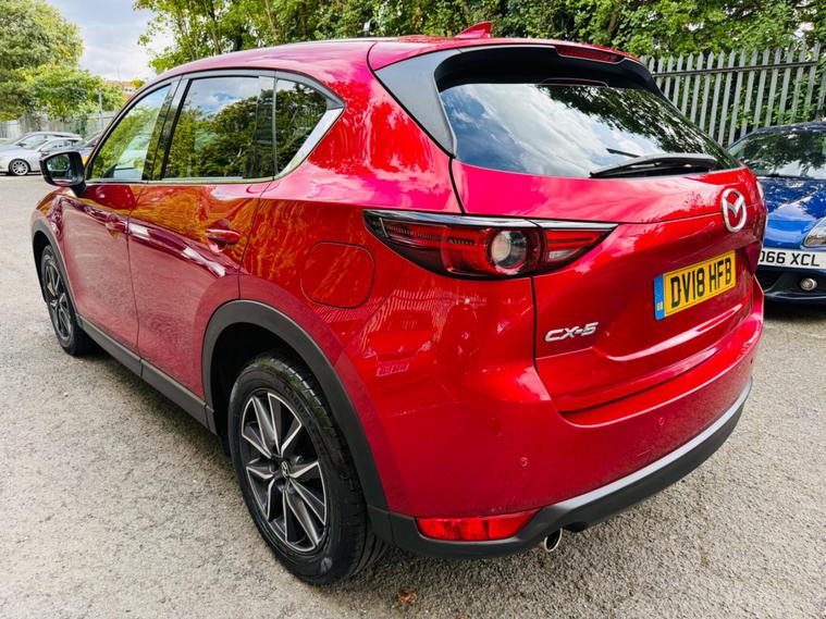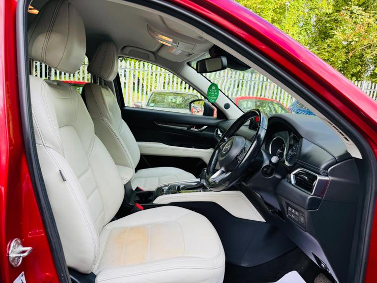 RED, SERVICE HISTORY, FINANCE AVAILABLE, NAVIGATION SYSTEM, PARKING CAMERA, LEATHER AND HEATED SEATS, ONLY ONE FORMER KEEPER, SPARE KEYS, PRIVACY GLASS, START/STOP, CRUISE CONTROL, ULEZ COMPLIANTSUPERB DRIVE, VERY ECONOMICAL, ALLOY WHEELS, CLIMATE CONTROL, VERY WELL LOOKED AFTER, VERY CLEAN IN AND OUTThis 2018 Mazda CX-5 SKYACTIV-D Sport Nav boasts a clear vehicle history and has had only one owner, ensuring excellent provenance. Powered by a 2.2 litre diesel engine and meeting Euro 6 emissions standards, this Sport Nav model offers a refined driving experience. Inside, you'll find dual zone climate control for personalised comfort, and the integrated Bluetooth system allows for seamless phone connectivity. Entertainment is provided by an AM-FM DAB radio with a single CD player and a premium Bose surround sound system featuring nine speakers. For added convenience, the driver's seat offers power adjustment with memory function, linked to the smart key. The advanced colour active driving display projects vital information, including vehicle speed, warnings, and turn-by-turn navigation, directly into your line of sight, complete with traffic sign recognition. With its MOT valid until June 2026, this CX-5 is ready for many more miles.This Mazda CX-5 stands out with its impressive fuel economy, achieving up to 50 miles per gallon, which is a significant advantage over many similar vehicles. Its low insurance group rating further contributes to its affordability. You'll also appreciate the generous boot space, making it a practical choice for families or those who need ample room for luggage or shopping. These highlights demonstrate how this particular CX-5 offers excellent value and practicality for everyday use..