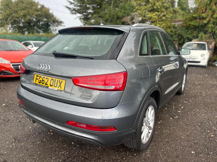 ? 2012 Audi Q3 2.0 TDI SE S Tronic quattro Euro 5 (s/s) 5dr? Reluctant Sale | Great Spec with Panoramic Roof? 12 Months Warranty | 12 Months Free AA Breakdown Cover? Finance Available | Part Exchange WelcomeThis well-kept Audi Q3 SE Quattro Auto was bought by its last owner after moving to Twickenham. Sadly, due to ULEZ restrictions, he has had to reluctantly part ways with it. A fantastic SUV with great spec including a panoramic roof, this example has been cherished and is ready for its next owner.? Spec & Features: • ⚙️ 2.0 TDI Diesel Engine | Automatic S Tronic Gearbox • ? Quattro All-Wheel Drive System • ☀️ Panoramic Glass Sunroof • ?️ Comfort Seats in Excellent Condition • ? Bluetooth Phone & Music Connectivity • ? Audi Concert Sound System • ?️ Satellite Navigation (MMI) • ? Multi-Functional Steering Wheel • ?️ Dual-Zone Climate Control / AC • ? Rear Parking Sensors • ? Alloy Wheels in Great Condition • ? Xenon Headlights + LED Daytime Running Lights • ? Driver Information System • ? Fresh MOT & Service Completed? Road Tax: £210 per year⛽ Fuel Economy: 50+ MPG? Service History | HPI Clear✅ 12 Months Warranty? 12 Months Free AA Breakdown Cover? Finance Available? Part Exchange Welcome? Ideal Buyer Tags:✅ Premium Compact SUV | ✅ Panoramic Roof | ✅ Quattro 4WD Confidence? A superbly maintained Q3 with high spec and panoramic roof — ready to drive away today..
