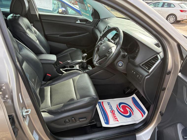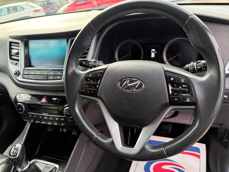 This 2017 Hyundai TUCSON CRDi Sport Edition is presented with an MOT valid until May 2026, offering peace of mind for the coming years. This Sport Edition model is equipped with a 1.7 litre diesel engine, meeting Euro 6 emissions standards. It benefits from a partial service history, with the last service recorded at 58, 620 miles. Inside, you'll find comfortable heated front seats, an 8 inch touchscreen satellite navigation system complete with traffic messaging and a reversing camera, front and rear parking sensors for effortless manoeuvring, and Bluetooth connectivity for seamless phone integration. Automatic headlights with a dusk sensor ensure optimal visibility in varying light conditions.This TUCSON stands out with an impressive fuel economy of 62 miles per gallon, indicating excellent efficiency for its class. Its low insurance group rating further contributes to affordable ownership. The vehicle also boasts a large boot space, making it practical for everyday use and longer journeys. Furthermore, its low CO2 emissions highlight its environmentally conscious design, making it a more economical choice compared to many similar vehicles. A 3 month warranty is included for added reassurance..