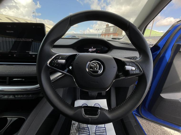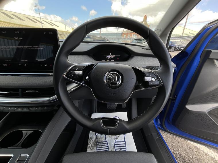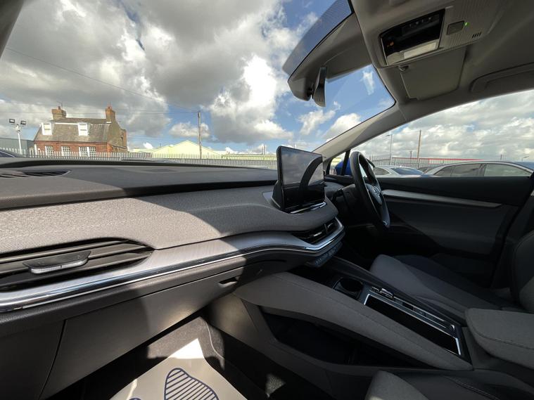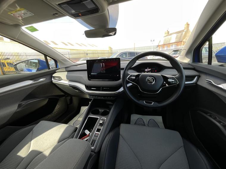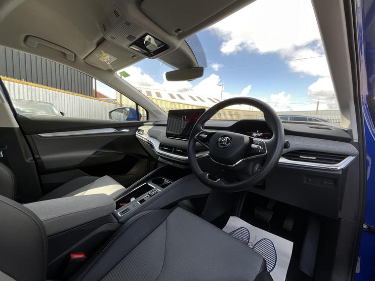 Discover this 2022 Skoda Enyaq 60, a superb electric vehicle offering an impressive new battery range of 246 miles. This Enyaq is presented in excellent condition, ready for its next owner. It comes equipped with Bluetooth connectivity for seamless audio streaming and hands free calls, enhancing your driving experience. The Skoda Enyaq 60 stands out with its generous boot space, providing ample room for all your luggage and shopping needs, making it a practical choice for families and everyday use. Charging is convenient, with a full charge at home taking approximately 9 hours and 30 minutes using a 7kW charger. For faster top ups, you can achieve an 80% charge from empty in just 37 minutes at a compatible public charging station..
