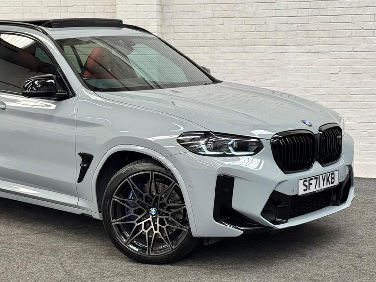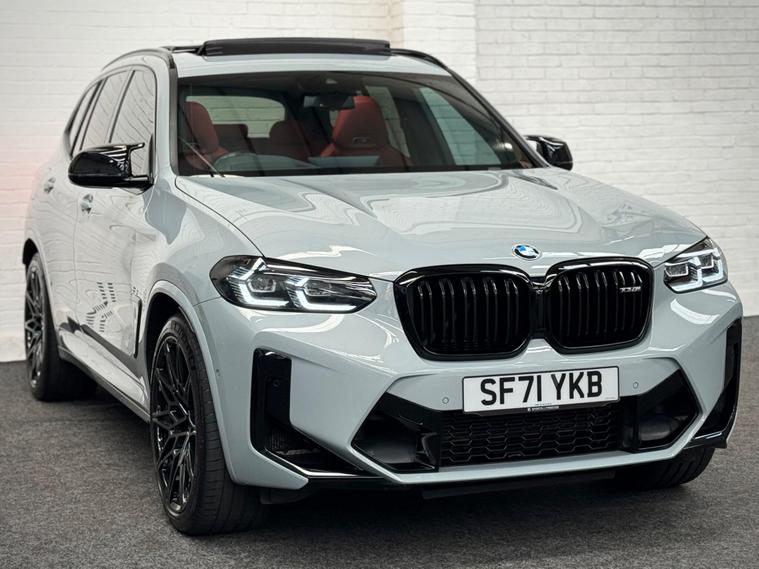 Offered by Motors For Less – AA & Trading Standards Approved Dealer2021 (21) BMW X3 M i Competition Auto xDrive – Brooklyn Grey36, 750 Miles | Full BMW Service History | 503BHP | Pan RoofRegistration: SF71 YKBMFL Sports & Prestige are proud to present this stunning BMW X3 M Competition finished in Brooklyn Grey with striking Merino Sakhir Orange leather interior. Covered just 36, 750 miles and backed by a full BMW service history, with a fresh service just completed by ourselves ready for the new keeper. Clear HPI, superbly maintained and a fantastic example throughout.=================================Full BMW Service HistoryFresh service just completed36, 750 milesFresh MOT On Sale | 2 x keysFactory Spec IncludesTilt & Slide Panoramic Glass SunroofHeated Front & Rear Merino Sakhir Orange Leather SeatsCarbon Fibre Interior Package inc. seat backsHeated Steering WheelComfort Access with Keyless EntryHead Up DisplayHarman Kardon Surround SoundParking Assistance System with Reverse CameraDriving Assistance with Blind Spot AssistFront & Rear Parking SensorsStorage Compartment Package21in 892M Alloy WheelsLED HeadlightsSun Protection GlassBluetooth Handsfree & AudioUpgrades & ExtrasMilltek Exhaust with Valve Control – sounds incredibleM Sports ExhaustGhost Immobiliser & Scorpion Tracker fittedFull Front PPF protection=================================Why Buy From UsAA and Trading Standards Approved Dealer with over 450 five star reviewsBuy Your Next Car With ConfidenceReady to Make It YoursAny Part Exchange WelcomeLow Rate Finance Available From 9.9% APRApply at dealer's website arrange a viewing appointment only please call Adam on 01274914061Same Day Nationwide Delivery AvailableFULLY REFUNDABLE DEPOSIT SECURES ANY VEHICLE (Based upon viewing).