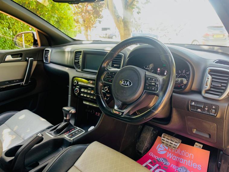 01 FORMER KEEPER , SPARE KEY, MOT TILL 28 May 2026 , With a clear vehicle history check and MOT valid until May 2026, this 2016 Kia Sportage 1.6L Petrol T-GDi GT-Line is ready to go. The GT-Line trim and four-wheel drive drivetrain add to the appeal of this Sportage, which also boasts a Euro 6 emission class. Enjoy the convenience of automatic headlight control, including automatic on functionality, and make parking a breeze with rear parking sensors and a reversing camera system. Passengers will appreciate the heated outer rear seats, while everyone stays comfortable thanks to dual automatic air conditioning with ioniser.This Sportage stands out with its low insurance group, potentially saving you money on premiums compared to similar vehicles. The large boot space offers practicality for families or anyone needing to transport bulky items. Furthermore, acceleration from 0-60mph in just 8.8 seconds means that this car is faster than other similar vehicles..