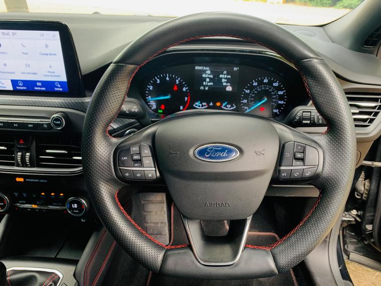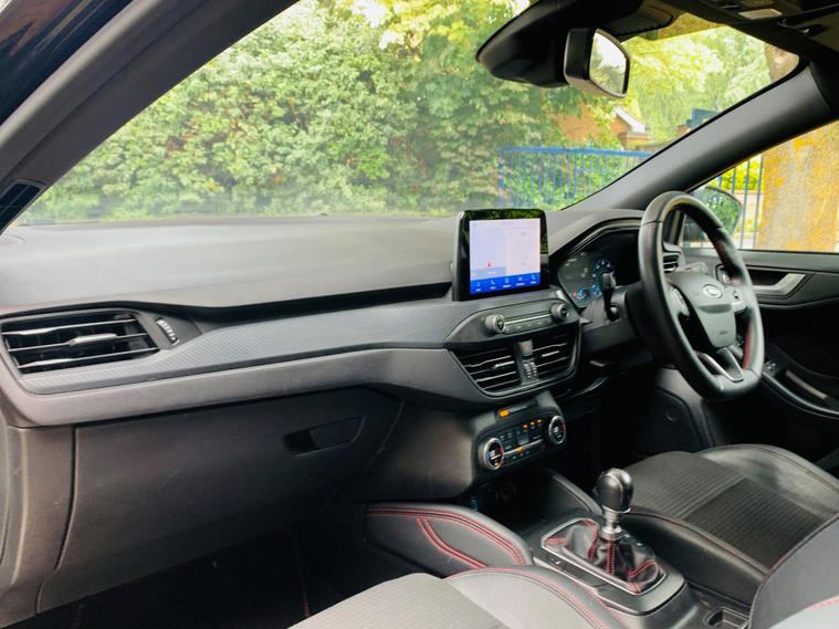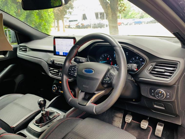 MOT IS TILL 9 June 2026, SERVICE HISTORY INCLUDES 4 SERVICE STAMPS IN THE BOOK AND FRESH SERVICED @ 86, 635 miles, FRONT DISC PADS DONE @87, 015 , 1 OWNER, SPARE KEY , With a clear vehicle history check and MOT valid until June 2026, this 2020 Ford Focus ST-Line X is ready to drive away. This model comes in the ST-Line X trim and is powered by a 1.0L petrol engine, adhering to Euro 6 emission standards. The car is equipped with the Ford SYNC3 DAB Navigation System, which includes Android Auto, Apple CarPlay, and Bluetooth connectivity. For added comfort, both the driver and passenger can enjoy heated seats, and the dual-zone electronic automatic temperature control ensures a pleasant climate inside the car.Parking is made easier with front and rear parking sensors. The automatic headlights offer convenience, turning on and off as needed. The acceleration of 0-62mph in 10.0 seconds indicates a responsive and engaging driving experience, making this vehicle a compelling option in its class..