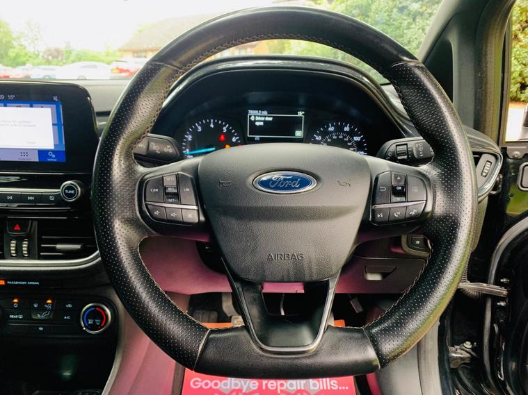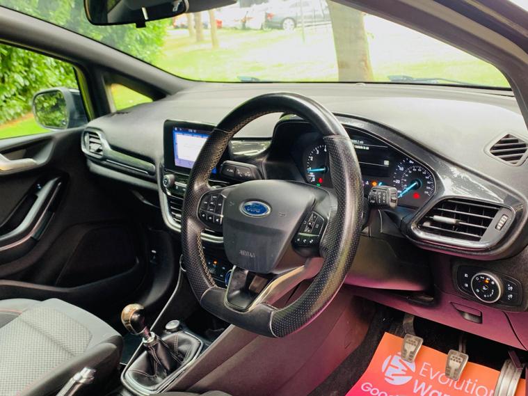02 FORMER KEEPER , SERVICE HISTORY With a clear vehicle history check and MOT valid until April 2026, this 2018 Ford Fiesta ST-Line is ready to drive away. As a T ST-Line variant, this Fiesta is equipped with a 1.0L petrol engine and meets Euro 6 emission standards. The ST-Line trim adds a sporty edge to this popular hatchback.This Fiesta includes the NCAP Pack, featuring automatic headlights for enhanced safety and convenience. The Ford DAB Radio with Ford SYNC3, complete with Apple CarPlay and Android Auto, ensures you stay connected and entertained on the move. Manual air conditioning keeps the cabin comfortable. The fuel economy of 60 mpg means lower running costs than other similar vehicles. Low CO2 emissions mean this vehicle is kinder to the environment than other similar vehicles, and acceleration from 0-62mph in 10.0 seconds means it's faster than other similar vehicles..