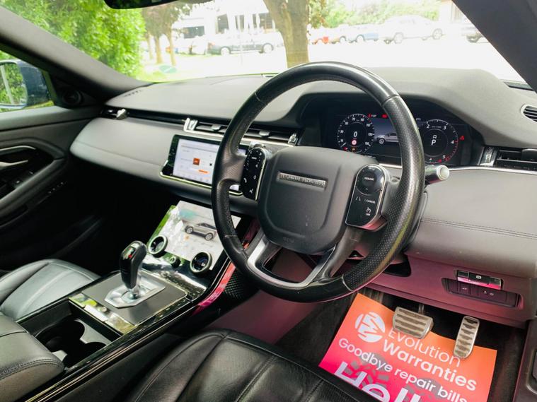 FULL DEALER SERVICE HISTORY WHICH INCLUDES 5 SERVICES FROM LANDROVER DEALERS AND FRESH SERVICED @ 44, 435 , 01 Former Keeper, With only 44285 miles on the clock, this 2019 Land Rover Range Rover Evoque D180 R-Dynamic SE presents an enticing opportunity. This four-wheel drive vehicle is powered by a 2.0L diesel engine and meets Euro 6 emission standards. The R-Dynamic SE trim adds a touch of sporty sophistication to this iconic SUV. Enjoy modern conveniences such as Apple CarPlay and Android Auto, seamlessly integrating your smartphone for navigation, entertainment, and communication. Manoeuvring is made easy with the rear view camera and 360-degree parking aid, including front and rear parking sensors. Maintaining a comfortable environment is effortless with the two-zone climate control system. Rest assured, the vehicle has a clear vehicle history check.The Range Rover Evoque accelerates from 0-60mph in 8.8 seconds, demonstrating its responsive performance. This is an indication of how this vehicle delivers a driving experience that is both engaging and efficient. The comprehensive parking assistance features set this vehicle apart, offering increased confidence and safety when navigating tight spaces..