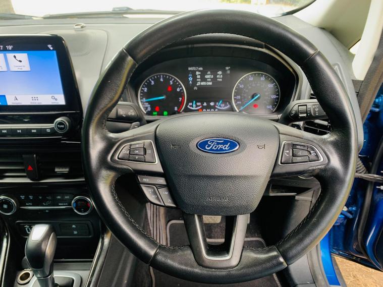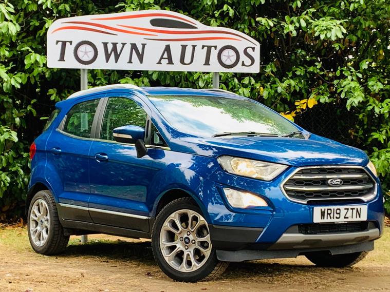 02 FORMER KEEPERS , WET BELT DONE , SERVICE HISTORY WITH 05 STAMPS ON THE BOOK AND FRESH SERVICED @ 84, 535 , SPARE KEY, MOT IS TILL 13 August 2026, Discover this 2019 Ford EcoSport T Titanium, a well presented example of this popular compact SUV. Powered by an efficient 1.0 litre petrol engine, this Euro 6 compliant model offers a refined driving experience. Inside, you'll find the advanced Ford SYNC 3 Navigation system, complete with an 8 inch touchscreen that seamlessly integrates with Android Auto and Apple CarPlay, alongside Bluetooth connectivity for effortless calls and music streaming. The convenience continues with automatic headlights that illuminate your path and electronic automatic temperature control for a consistently comfortable cabin.This Ford EcoSport Titanium also boasts a rear view camera pack, including a rear camera and parking sensors, making manoeuvring in tight spaces much simpler. A key highlight of this vehicle is its low CO2 emissions, indicating a more environmentally conscious choice compared to many similar cars. This EcoSport is designed to offer a practical and enjoyable driving experience for everyday use..