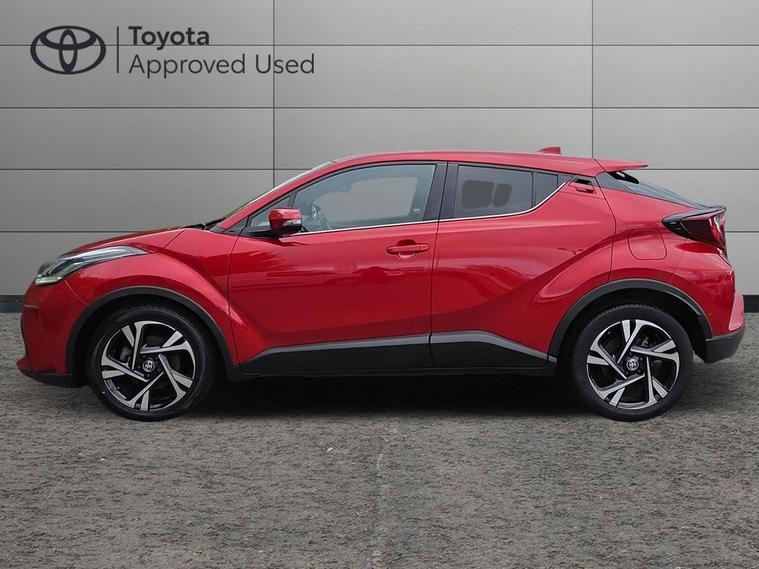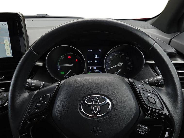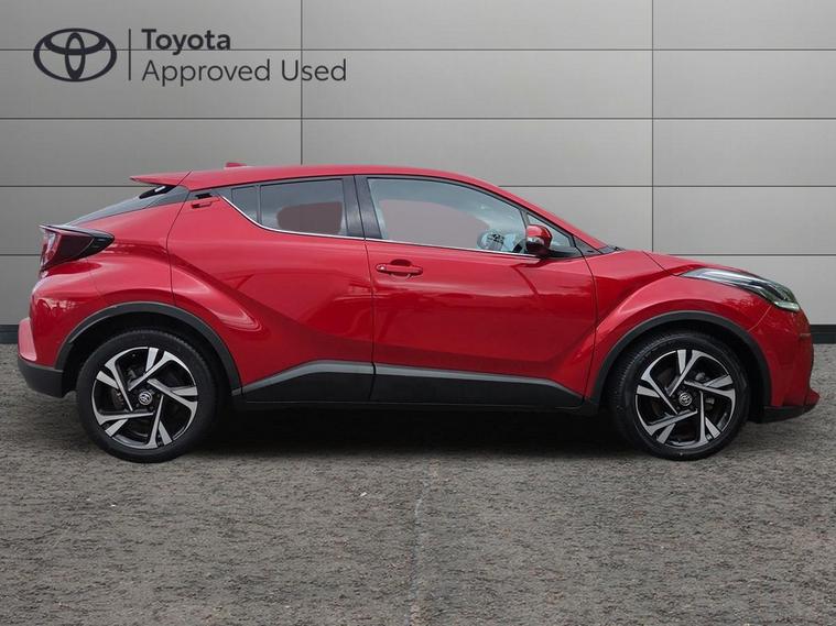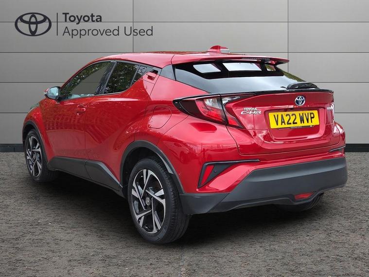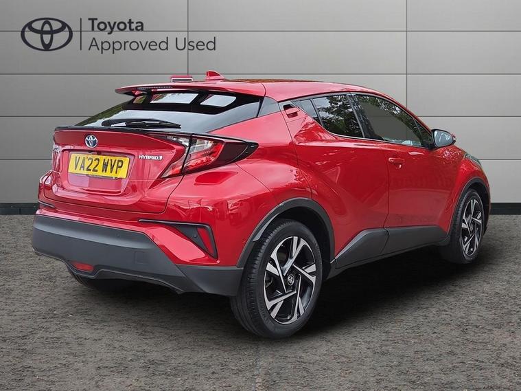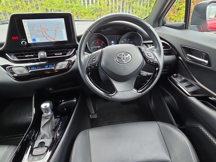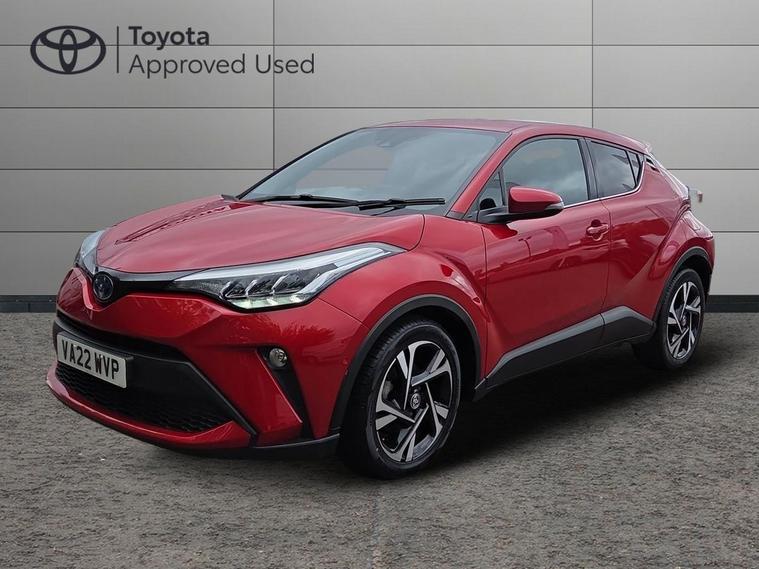This 2022 Toyota C-HR VVT-h Design is a Toyota manufacturer approved vehicle with a full dealership service history and a very low mileage of just 17, 712 miles, offering you peace of mind with a 12 month warranty. This stylish hatchback is powered by an efficient 1.8L petrol hybrid engine, meeting Euro 6 emissions standards. Inside, you'll find a comfortable cabin enhanced by a Leather Pack and Dual Zone Automatic Air Conditioning with Climate Control. For effortless parking, it features a Reversing Camera with Parking Assistance, Front and Rear Parking Sensors, and Intelligent Clearance Sonar with Automatic Braking. The exterior is complemented by LED Reflector Headlights.This Toyota C-HR Design stands out with its impressive fuel economy, achieving a remarkable 58 miles per gallon, which indicates it is more economical than many similar vehicles. Furthermore, its low insurance group and low CO2 emissions highlight its cost effectiveness and environmental consideration, making it an attractive choice for a wide range of drivers..
