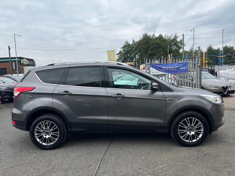 2 OWNER CAR WITH SERVICE HISTORY+JUST A GREAT CLEAN EXAMPLE OF THIS POPULAR FORD MODEL. SERVICE HISTORY+FINANCE ARRANGED+PX WELCOME.This 2013 Ford Kuga TDCi Titanium presents a compelling proposition with its remarkably low mileage of 80, 000 miles for its age, coupled with a history of only two owners and a clear vehicle history check. Under the bonnet, you'll find a capable 2.0L diesel engine powering a Four Wheel Drive system, offering confident performance. Inside, the Titanium trim ensures a comfortable and convenient experience, featuring Dual Zone Electronic Automatic Temperature Control for personalised climate settings, and Bluetooth handsfree with voice control for seamless connectivity. Automatic headlights and heated driver and passenger seats further enhance the practicality and comfort of this well maintained vehicle.The Ford Kuga TDCi Titanium stands out with its attractive combination of features and provenance. Its low insurance group rating is a significant advantage, suggesting lower running costs compared to similar vehicles. The inclusion of features like heated seats and automatic headlights demonstrates a higher level of specification, providing added comfort and convenience for everyday driving. This Kuga is a sensible choice for those seeking a reliable and well equipped family car..