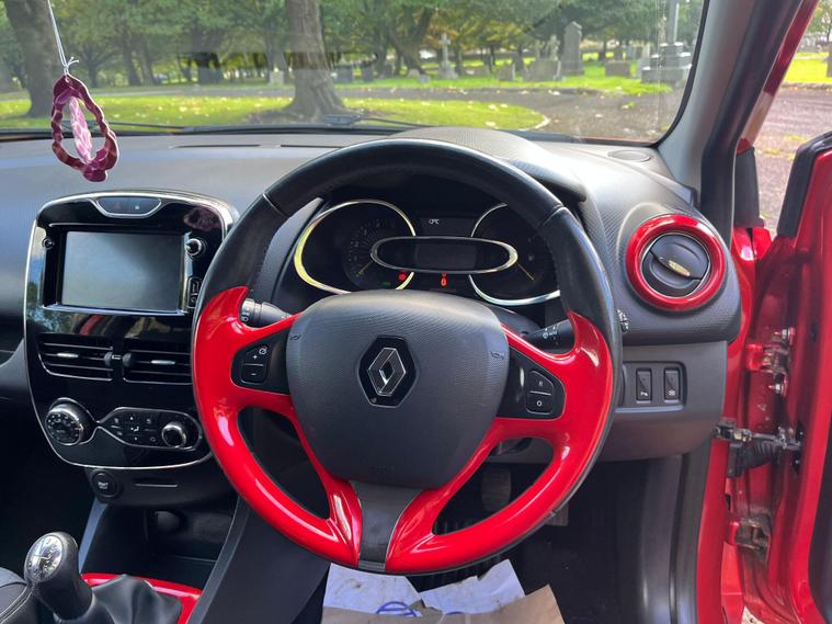 RENAULT CLIO 1.5 DCI DYNAMIQUE IN A RED EXTERIOR COLOUR WITH BLACK/GREY CLOTH INTERIOR WITH RED TRIMS... HAS A FULL SERVICE HISTORY LAST DONE AT 64K MILES... COMES WITH 2 REMOTE KEYS... LOW WARRANTED MILES... £20 ANNUAL ROAD TAX... COMES WITH MOT DUE IN DECEMBER 2025... FEATURING A MULTIFUNCTION STEERING WHEEL WITH CRUISE CONTROL LIMITER... FINGER TIP CONTROLS... PUSH BUTTON START... BACK PARKING SENSORS... FOG LIGHTS... AUTO LIGHTS AND WIPERS... TOUCHSCREEN RADIO WITH BLUETOOTH CONNECTIVITY, BUILT IN SATNAV, RADIO SETTINGS AND USB/AUX PORTS WITH A ALL ROUND BASS REFLEX SPEAKER SYSTEM... ECO MODE... CLIMATE CONTROL WITH FRONT AND BACK HEATED WINDOWS... ELECTRIC ADJUSTABLE SIDE FOLDING MIRRORS... CENTRAL LOCKING DOOR CONTROLS... ALL ROUND ELECTRIC WINDOWS... CUP HOLDERS... ALLOY WHEELS WITH DECENT TREAD ALL ROUND... WARRANTY INCLUDED... TEST DRIVES ARE WELCOME... OPTIONAL NATIONWIDE DELIVERY EXTRA... BOOK-INS AND VIDEO VIEWINGS ARE AVAILABLE... TEST DRIVES ARE WELCOME... FOR MORE INFORMATION CALL US TODAY ON 01616232309..