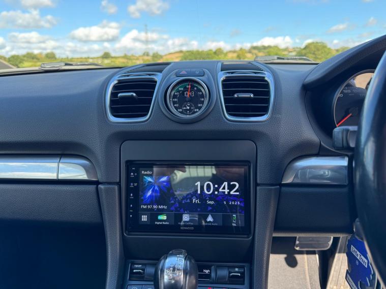 This stunning Porsche Cayman 2.7 981 PDK is beautifully finished in Metallic White, complemented by 20-inch 911 Turbo Design Alloy Wheels. The interior is both stylish and modern, featuring a 7-inch Kenwood touchscreen display (with the original Porsche PCM unit included) along with Bluetooth, DAB radio, climate control air conditioning, heated front seats, Apple CarPlay & Android Auto. Convenience is further enhanced by front and rear parking sensors with a reversing camera. With just two previous owners, this Cayman represents a superb example of Porsche’s engineering excellence. It comes with a full service history (most recently serviced on 28/08/2025), 12 months MOT, 3 months warranty, 2 keys, and is both ULEZ compliant and HPI clear. Finance options are available..