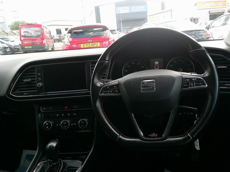 With an impressively low mileage for its age, this 2018 SEAT Leon TSI FR Technology offers a compelling package for discerning drivers. This Euro 6 compliant model boasts a responsive 1.8 litre petrol engine, delivering brisk acceleration from 0 to 62mph in just 7.7 seconds. Benefiting from a partial service history, with the last service recorded at 43120 miles, and MOT valid until May 2026, this Leon comes with a 3 month warranty for your peace of mind. Notable features include the Convenience Pack Plus with automatic headlights, dual zone climate control for optimal comfort, and SEAT Full Link Smartphone Integration, compatible with Mirror Link, Apple CarPlay, and Google Android Auto. Navigate with ease thanks to the integrated navigation system with Bluetooth connectivity, and enjoy superior visibility with full LED headlights.This SEAT Leon stands out with several key advantages that set it apart from similar vehicles. Its fuel economy is a significant highlight, achieving an impressive 49 miles per gallon, making it an economical choice for daily driving. Furthermore, its low CO2 emissions contribute to a more environmentally friendly footprint. The vehicle also falls into a low insurance group, which can help to reduce ownership costs. Practicality is also a strong suit, with generous boot space catering to all your storage needs. With a current mileage of 54441 miles, this Leon TSI FR Technology represents excellent value, combining performance, technology, and efficiency..