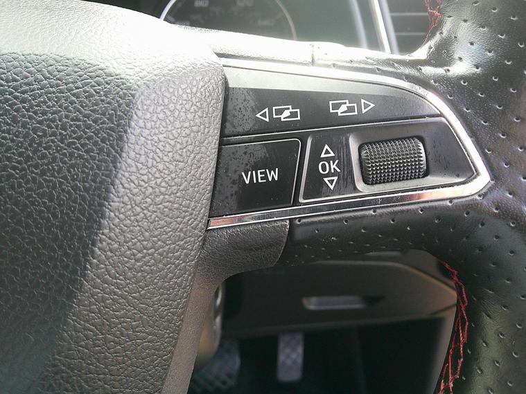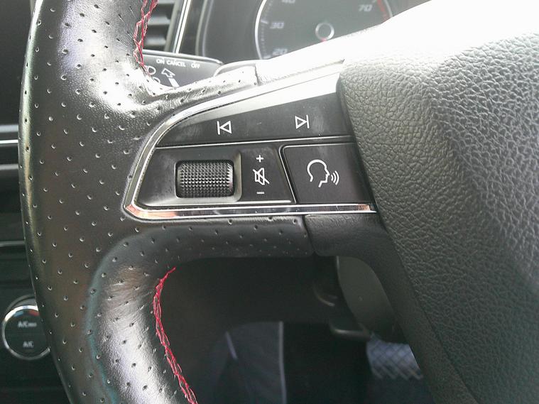 - Steering Wheel - Flat-Bottomed Perforated Leather with Red Stitching and FR Logo