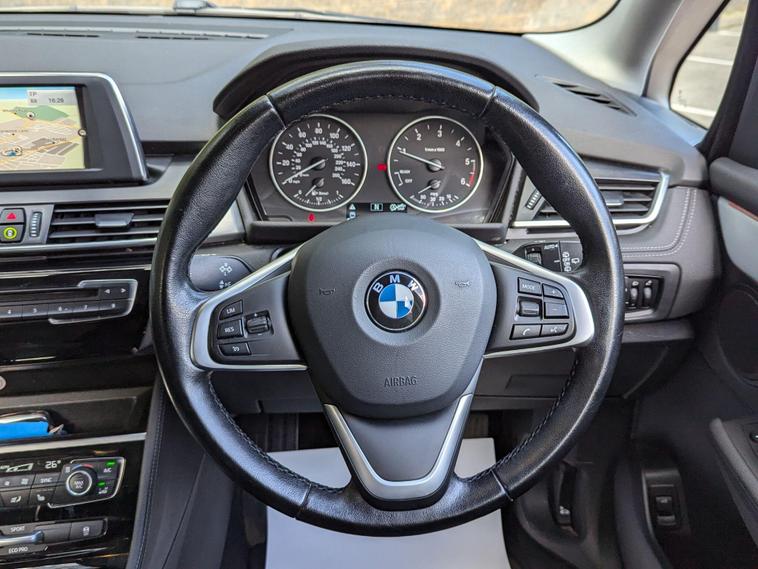 This 2016 BMW 2 Series Gran Tourer 218d Sport is a fantastic example of a well cared for vehicle, having had only one owner since new.  Finished in the popular Sport trim, this versatile MPV boasts a 2.0L diesel engine and a Euro 6 emission class, making it an efficient choice.  Inside, you'll find comfortable seating for seven, perfect for families or those needing extra space.  The Sport interior is enhanced by brushed aluminium trim with a pearl chrome finisher, and convenience is further elevated by a reversing assist camera with parking assistance, heated front seats, an automatically dimming rear view mirror, and automatically dimming folding door mirrors.This BMW 2 Series Gran Tourer offers impressive practicality and economy, with a remarkable fuel economy of 64 mpg, which is significantly better than many similar vehicles. Its low CO2 emissions also contribute to its cost effectiveness. You'll appreciate the generous boot space, providing ample room for luggage or shopping. Furthermore, its acceleration from 0 to 62 mph in just 9.5 seconds demonstrates a capable performance, and its low insurance group rating makes it an attractive option for many drivers..