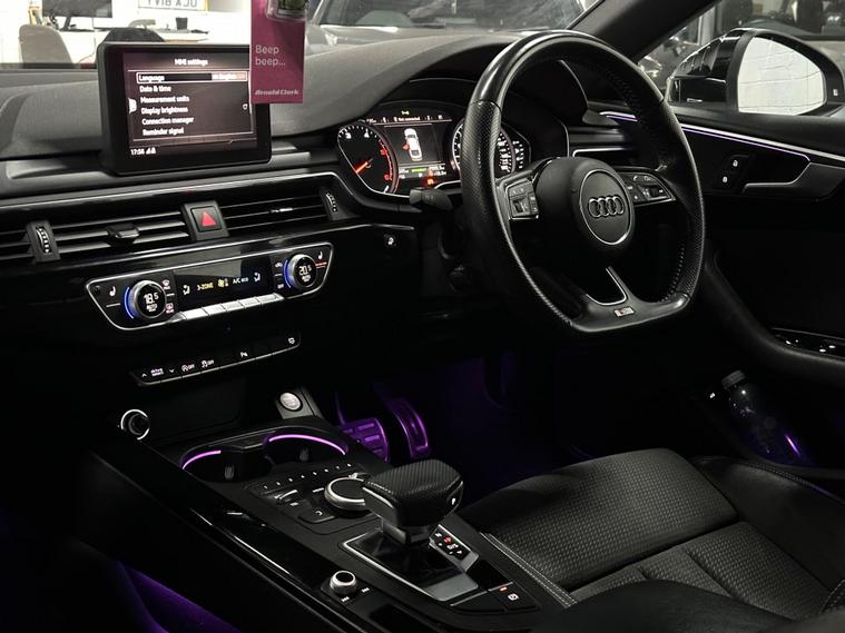 This 2017 Audi A5 TDI S line offers a sophisticated driving experience, boasting a powerful 2.0 litre diesel engine and meeting Euro 6 emissions standards. Finished in a sleek design, this S line variant comes equipped with an Extended LED Interior Lighting Package offering multi coloured ambient lighting, heated and electrically adjustable folding door mirrors that also auto dim and feature a memory function, and privacy glass for added comfort and style. Inside, you'll find a flat-bottomed 3-spoke leather steering wheel for a sporty feel and piano finish black inlays that enhance the premium cabin.The Audi A5 TDI S line is designed for both performance and practicality, accelerating from 0 to 60mph in a swift 7.6 seconds. This impressive acceleration, combined with its generous boot space, demonstrates how this A5 provides a superior blend of dynamic capability and everyday usability compared to other vehicles in its class..