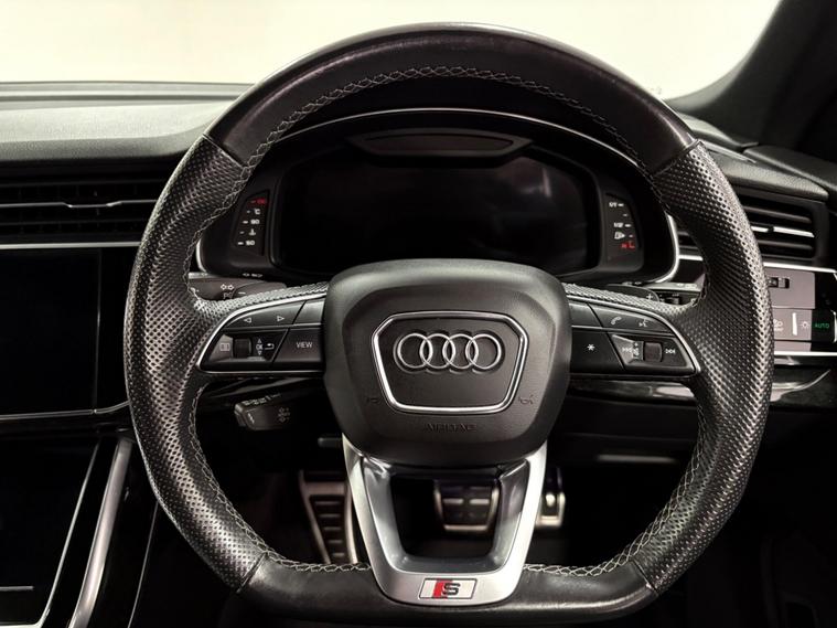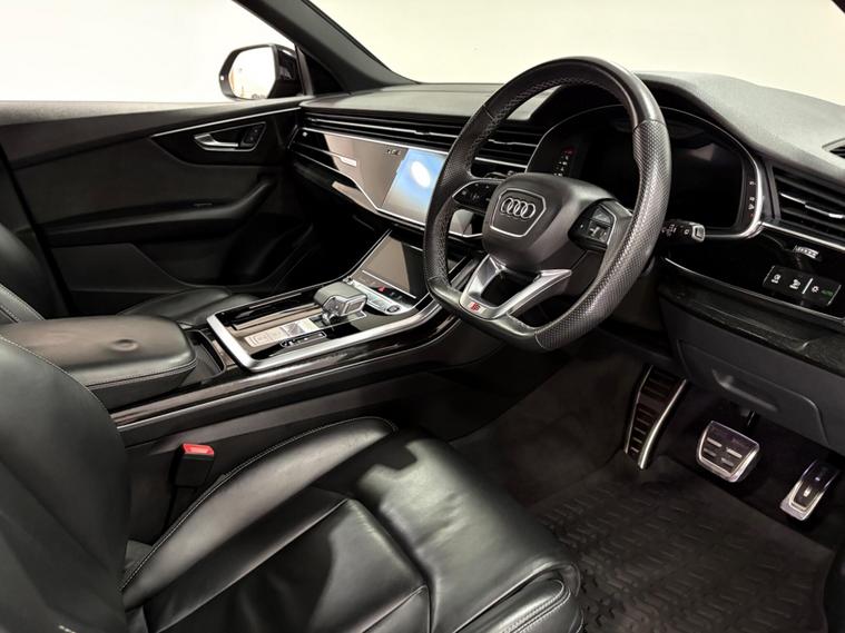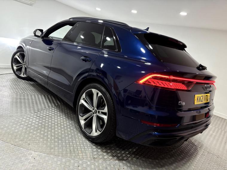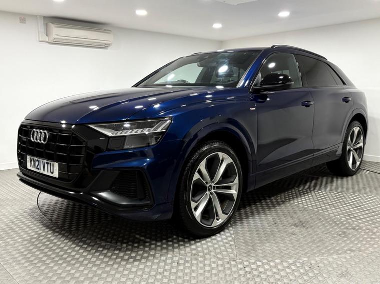 Boasting an impressive full dealership service history serviced at 5-15-24-33k miles and an MOT valid until March 2026, this 2021 Audi Q8 TDI V6 Black Edition represents exceptional provenance. Powered by a robust 3.0L Diesel engine and featuring Four Wheel Drive, this Euro 6 compliant model offers a substantial towing weight of 2800 kg. With a low mileage of just 39795 miles, this Black Edition variant comes equipped with the City Assist Pack, including Blind Spot Assistance, and electrically adjustable front seats with driver memory. Enjoy the comfort of heated front seats and convenient parking with a rear view camera, all while staying connected through the Audi Smartphone Interface with Android Auto and Apple CarPlay.This Audi Q8 is designed to impress, accelerating from 0 to 62mph in a swift 6.1 seconds, demonstrating its superior performance compared to similar vehicles. The generous boot space ensures practicality for all your needs, making it a versatile choice for both daily driving and longer journeys. The combination of its powerful engine, advanced technology, and comprehensive service record makes this Q8 a standout option for those seeking a premium and reliable driving experience..