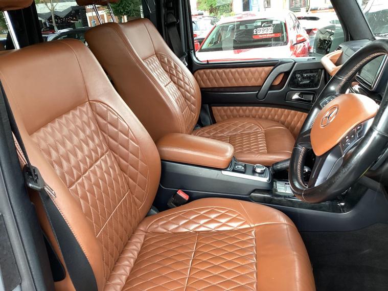 RARE NARDO GREY WITH UNIQUE CHELSEA TRUCK COMPANY INTERIOR WITH KHAN SEATS, SERVICE HISTORY **READ OUR HONEST CUSTOMER 5 STAR REVIEWS ON GOOGLE, YOU'LL BE PLEASED YOU CHOSE US** PRICED AT THE ''BUY IT NOW PRICE'' SAVE £100'S!!! Cars of Christchurch is a company that you can depend on, all our vehicles come with 12 months AA assistance, three month warranty with incredible deals to extend (please ask for details) and are serviced and MOT if required. Ask about our delivery service. We are happy to arrange finance and we deal with all non-in-house finance companies. Please feel free to call us to arrange a viewing or to place a deposit.This 2015 Mercedes Benz G Class G350 V6 is a remarkable example with exceptionally low mileage for its age, having covered just 63, 000 miles. Powered by a robust 3.0L Diesel engine and featuring a Four Wheel Drive drivetrain, this vehicle offers dependable performance. Inside, you'll find the comfort of Heated Front Seats and the luxury of design Single Tone Leather in Sand. For added convenience and entertainment, it includes a Rear Seat Entertainment System and a Rear Entertainment Package. Parking is made easier with Parktronic, providing audible and visual parking aid for the front of the vehicle.The G Class boasts a substantial boot space, making it ideal for carrying luggage or equipment. Its acceleration is noteworthy, reaching 0-62mph in a brisk 9.1 seconds, demonstrating its capable performance. The towing weight of 3500 kg further highlights its versatility and power, indicating it is better equipped for towing than many similar vehicles. This combination of luxury, capability, and low mileage makes this Mercedes Benz G Class a compelling choice..