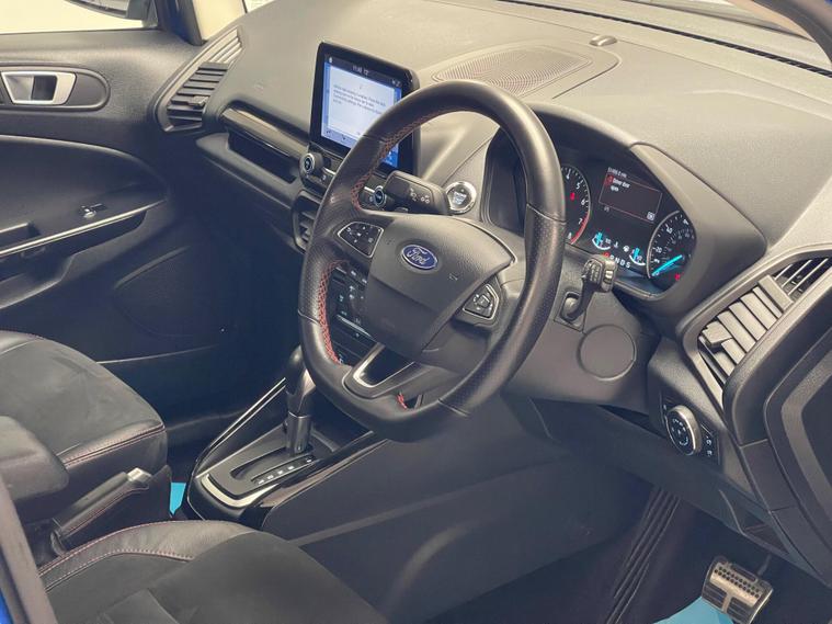 This 2018 Ford EcoSport ST Line offers a compelling blend of style and practicality, boasting a 1.0L petrol engine and meeting Euro 6 emissions standards. As a T ST-Line variant, it presents a sporty aesthetic. Inside, you'll find a Ford DAB Navigation System with Ford SYNC3, compatible with both Android Auto and Apple CarPlay, alongside Bluetooth connectivity for seamless integration of your devices. Comfort is further enhanced by Electronic Automatic Temperature Control, ensuring a pleasant cabin environment. Practicality is key with a front passenger underseat storage area and a versatile 60-40 split rear seat that can fold and tumble.This EcoSport is equipped with a Rear View Camera and Rear Parking Sensors, complete with Parking Assistance, making manoeuvring and parking significantly easier. The fuel economy is a notable highlight, achieving an impressive 46 miles per gallon, which indicates its efficiency compared to similar vehicles. This combination of advanced technology, comfort features, and economical performance makes the 2018 Ford EcoSport ST Line a well rounded choice..