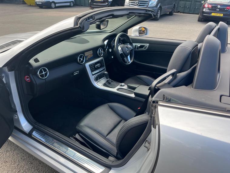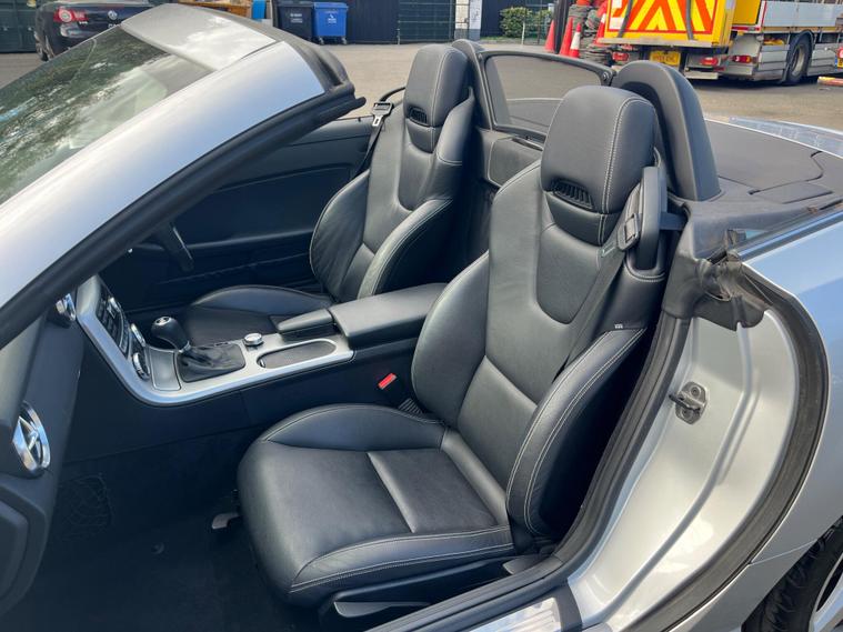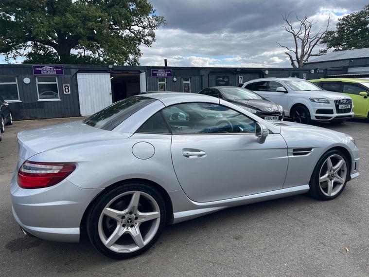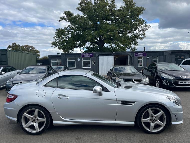 This Mercedes-Benz SLK 1.8 SLK250 BlueEfficiency G-Tronic+ Euro 5 (s/s) 2d LOOKS AMAZING IN THE BEST COLOUR SILVER METALLIC CONTRASTING BLACK LEATHER HEATED SEATS WITH AIR-SCARF AND INTERIOR AND ALUMINIUM TRIM TO THE DASH AND DOOR CARDS YES VERY SMART. THE LAST OWNER HAS LOVED AND CHERISHED THE CABRIOLET FOR NEAR 5 YEARS & YOU CAN TELL THAT BY THE SUPERB CONDITION THE IS IN YES AND IT'S REALLY LOW MILEAGE FOR THE YEAR 43K WITH A FULL SERVICE HISTORY 11 SERVICES 4 MERCEDES MAIN DEALERSHIP & 7 A M.B. SPECIALIST. THE ROADSTER HAS A POWER CONVERTIBLE SUNROOF, BECKER NAV PILOT NAV SYSTEM, STEREO RADIO CD PLAYER WITH DAB STEREO SOUND SYSTEM, HAND FREE BLUETOOTH TELEPHONE CONNECTION, AIR SCARF, F RONT AND REAR PARKING SENSORS, REMOTE CONTROL CENTRAL LOCKING SYSTEM, 18 INCH AMG ALLOY WHEELS WITH GOOD TYRES. THERE IS 1 KEY & ALL THE BOOKS AND MANUALS. A BETTER SET OF PHOTOS TOMORROW AS SOON AS IT ARRIVE FROM THE MERCEDES MAIN DEALERSHIP. Discover this exceptional 2012 Mercedes Benz SLK200 AMG Sport, boasting remarkably low mileage for its age at just 43, 789 miles. This desirable convertible has had only three owners from new and comes with a clear vehicle history check, offering peace of mind. The AMG Sport trim enhances its appeal, featuring a responsive 1.8L petrol engine. Inside, you'll appreciate the convenience of Headlamp Assist for automatic headlight activation, air conditioning to keep you comfortable, and a Bluetooth interface for hands free telephone calls.This SLK200 AMG Sport stands out with its impressive fuel economy of 44 miles per gallon, a significant advantage for running costs compared to similar vehicles. Furthermore, its low CO2 emissions contribute to a more environmentally conscious driving experience. This combination of excellent provenance, desirable features, and efficient performance makes this Mercedes Benz SLK a compelling choice for those seeking a stylish and practical convertible..