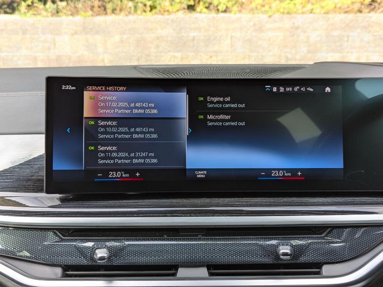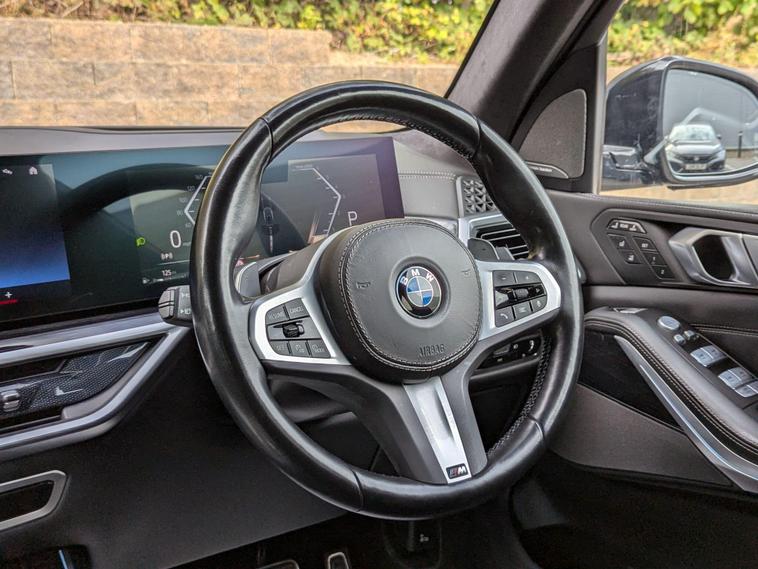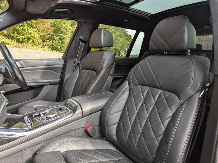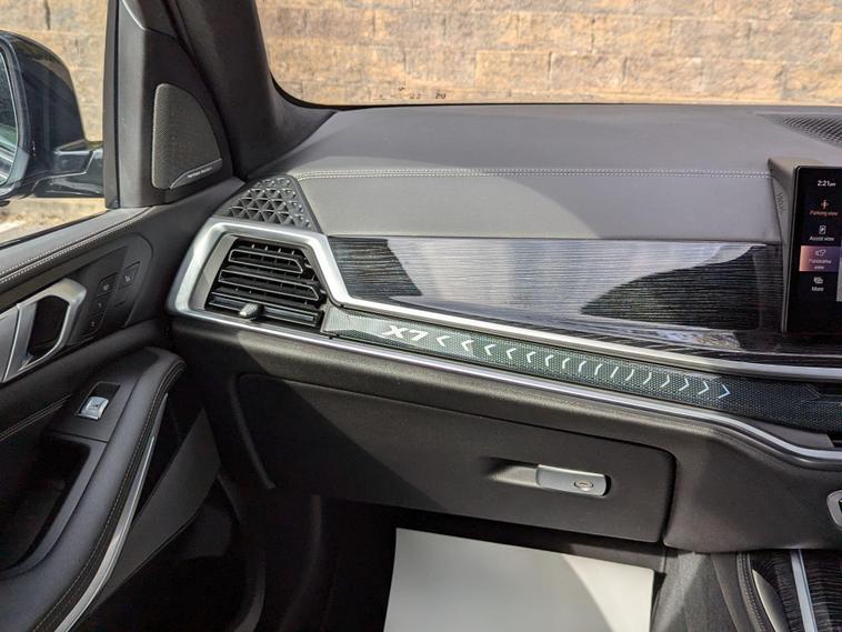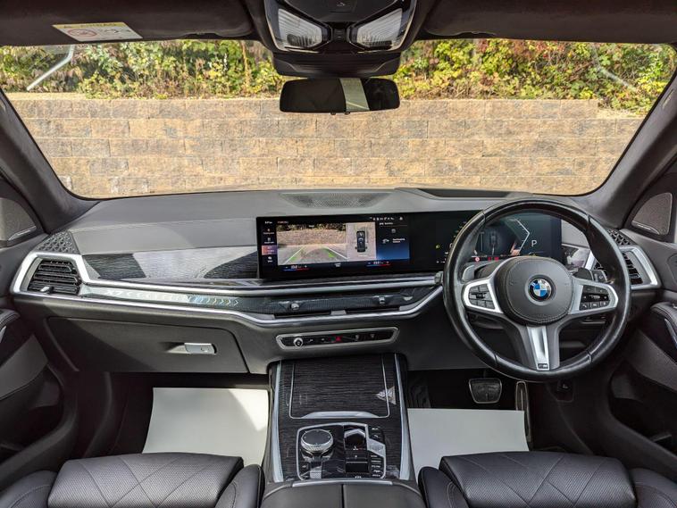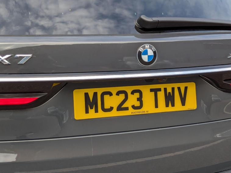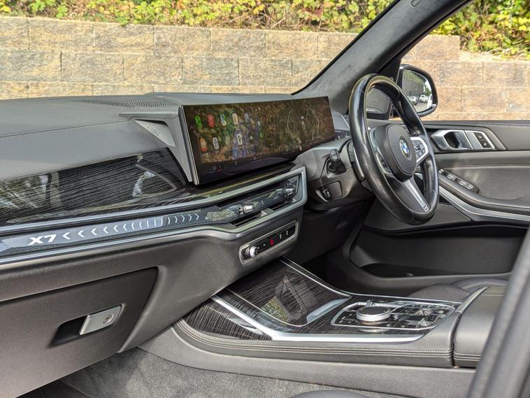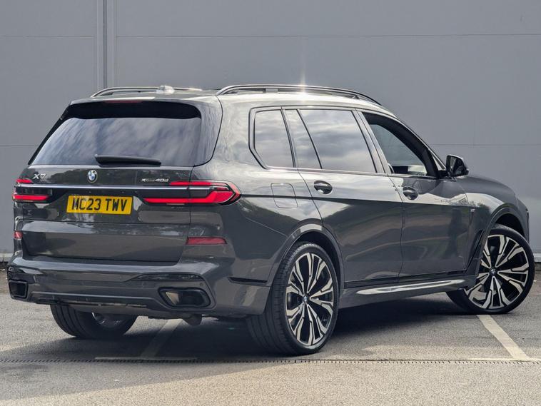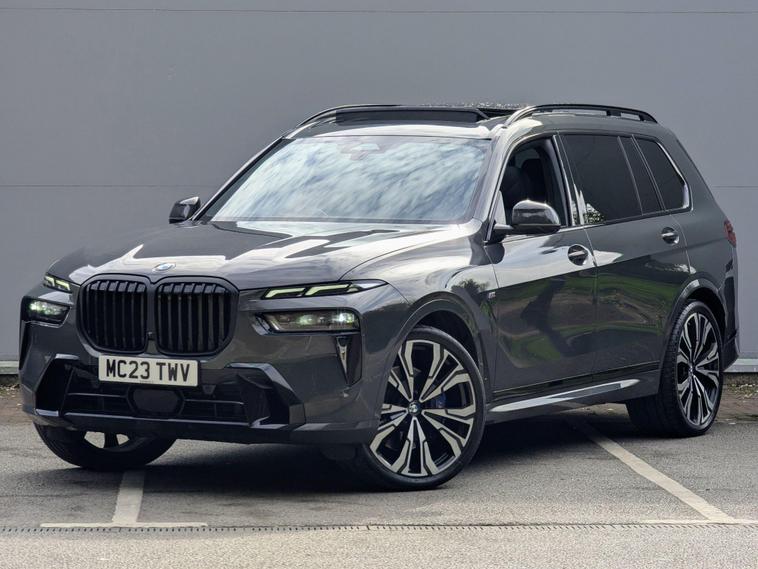 This 2023 BMW X7 40d M Sport is a remarkable example, boasting a full dealership service history and a clear vehicle history check, ensuring complete peace of mind for its next owner. This impressive seven seater features a powerful 3.0L Diesel Hybrid engine paired with Four Wheel Drive, offering both performance and efficiency. Its Euro 6 emission class meets modern environmental standards, and with a towing weight of 2200 kg, it's ready for any adventure. The vehicle comes with a 3 month warranty and a 12 month MOT provided on purchase, alongside the reassurance of only one previous owner.The M Sport trim enhances the already striking X7, and this particular model is equipped with a host of desirable features. The electric towbar adds practicality, while the 23in Individual V-Spoke Bicolour alloy wheels provide a commanding presence. Inside, the Comfort Plus Package ensures exceptional comfort with advanced air conditioning and heated seats. Driving is made effortless and informative with the BMW Live Cockpit Professional, complete with a Head Up Display and Bluetooth connectivity. The panoramic glass sunroof floods the cabin with light, creating an airy and spacious feel. This X7 truly stands out, accelerating from 0-62mph in a swift 5.9 seconds, demonstrating its superior performance compared to other vehicles in its class..