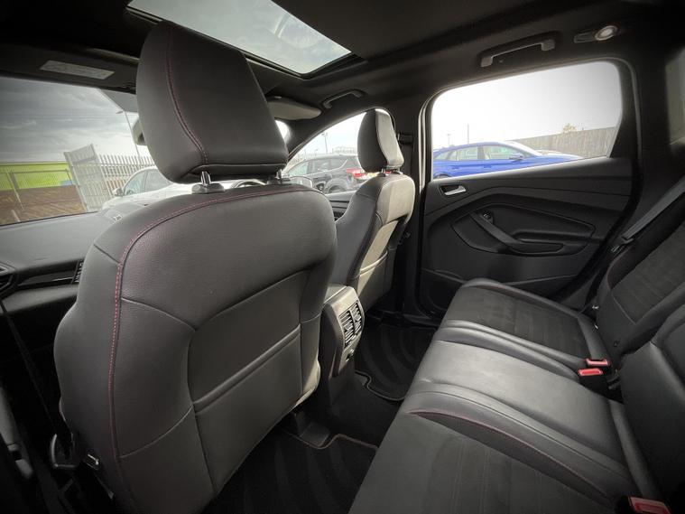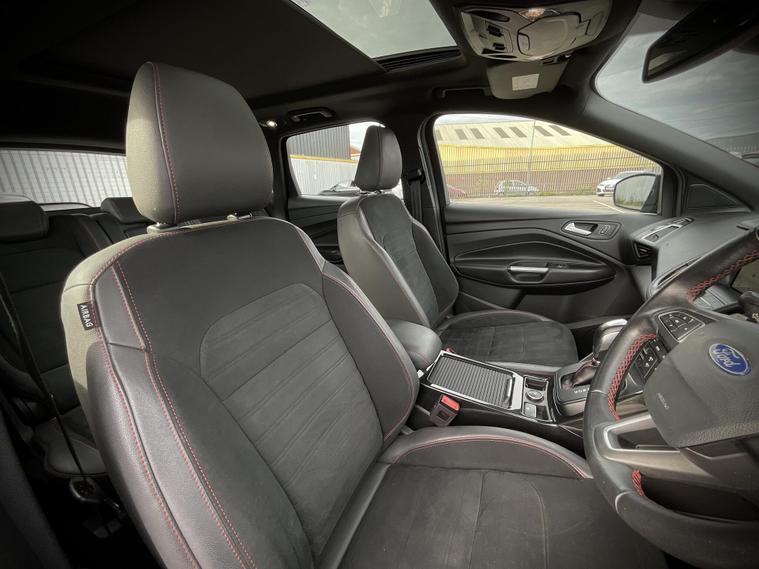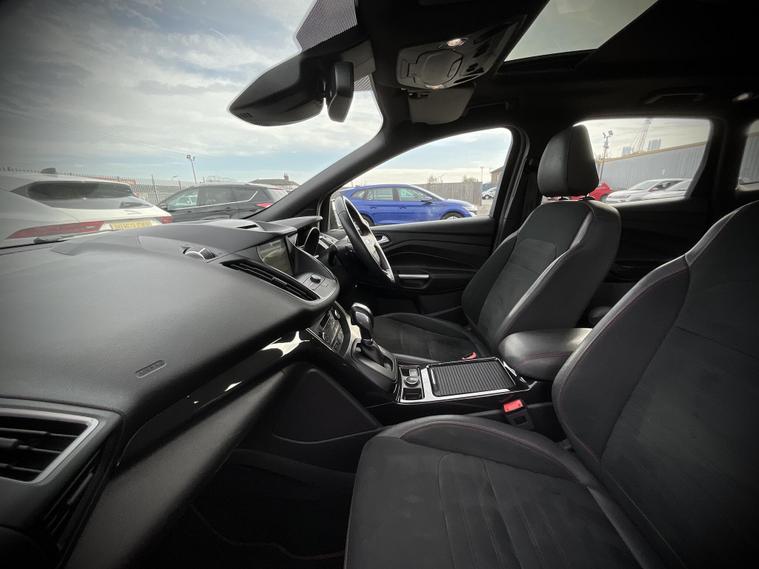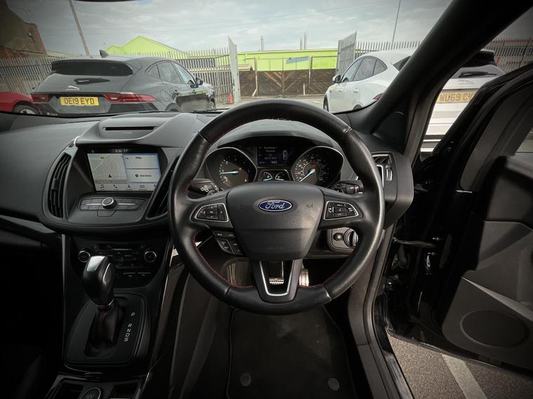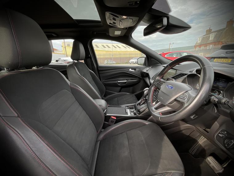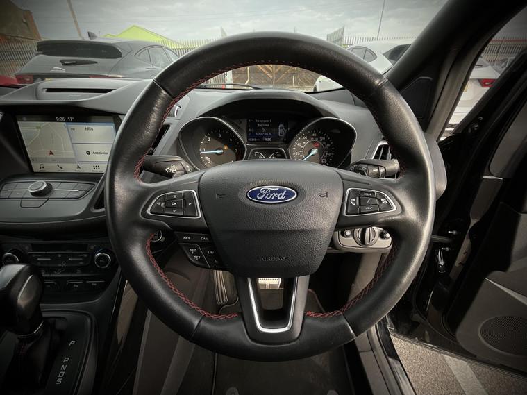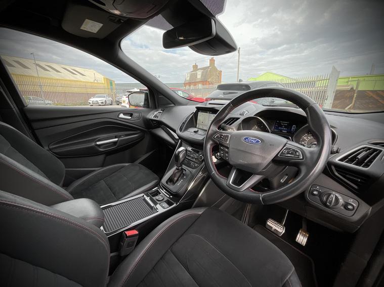 This 2018 Ford Kuga TDCi ST-Line X offers a superb ownership history, having been meticulously maintained by just one owner from new. Powered by a robust 2.0 litre diesel engine and featuring a capable four wheel drive system, this Euro 6 compliant model is built for both efficiency and all weather performance. The ST-Line X trim level ensures a premium experience, boasting a comprehensive suite of features designed for comfort and convenience. The Kuga ST-Line X stands out with its sporty styling and enhanced specification, demonstrating a higher level of refinement compared to other vehicles in its class. Its combination of a powerful yet economical diesel engine, the security of four wheel drive, and the desirable ST-Line X trim makes it a compelling choice for those seeking a versatile and well equipped SUV. This particular example, with its single owner provenance, represents excellent value and a well cared for example of this popular model..