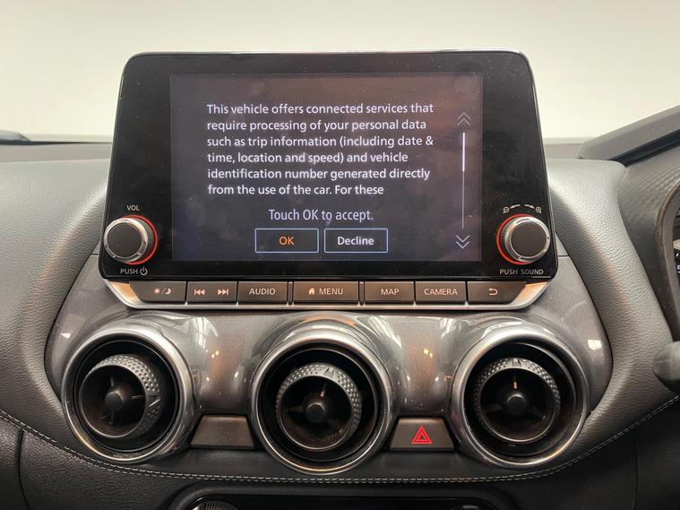 Discover this 2020 Nissan Juke DIG T N Connecta, a stylish and practical choice for your next vehicle. This Euro 6 compliant model boasts a 1.0 litre petrol engine, offering an impressive fuel economy of 46 miles per gallon. Inside, you'll find a comfortable cabin featuring grey synthetic leather knee pads and a manually adjustable passenger seat with slide and recline functions. Connectivity is made easy with Bluetooth, USB, and Aux inputs, all powered by a 12V socket. For added convenience, this Juke includes a Comfort Pack with climate control and a voice recognition switch conveniently located on the steering wheel.The low CO2 emissions of this Nissan Juke highlight its efficiency, making it a more environmentally conscious option compared to similar vehicles. Its combination of modern features, economical performance, and a well appointed interior makes this Juke N Connecta a compelling proposition for anyone seeking a reliable and enjoyable driving experience..