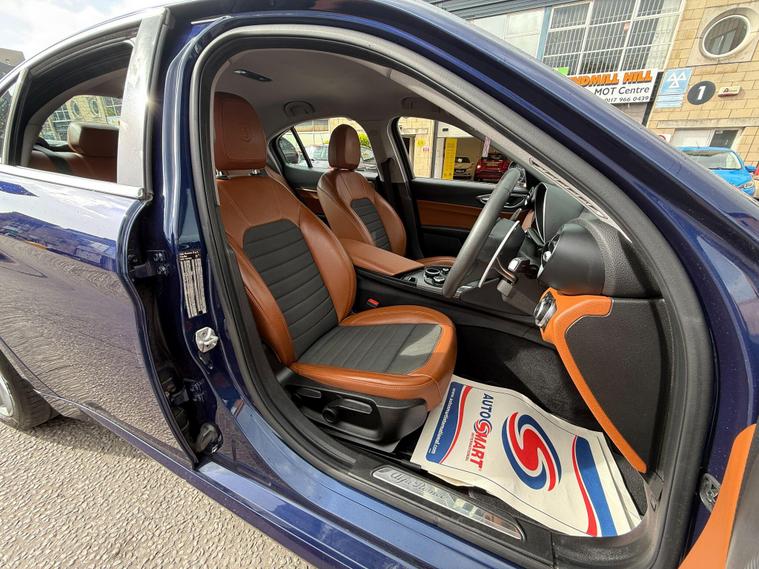 This 2017 Alfa Romeo Giulia TD Super presents an exceptional opportunity with its remarkably low mileage of just 57, 800 miles. As a Euro 6 compliant vehicle, it features a 2.2 litre diesel engine, offering an impressive fuel economy of up to 67 miles per gallon. This Super trim model is further enhanced by the desirable Sport Pack, which includes Xenon headlights, and the Convenience Pack, providing keyless entry. You'll also notice the stylish black brake calipers, elegant chrome window surrounds, and the practical Climate Pack, all contributing to a refined driving experience.The appeal of this Giulia extends beyond its specifications, with highlights that set it apart. Its low CO2 emissions and low insurance group indicate that running costs are kept to a minimum, making it an economical choice. Furthermore, its brisk acceleration, capable of reaching 0 to 62 miles per hour in just 7.2 seconds, demonstrates a blend of efficiency and performance that is truly noteworthy compared to other vehicles in its class..