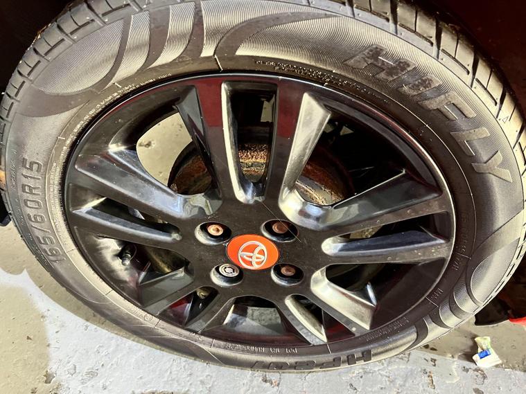 - 15in Alloy Wheels - 5 Double-Spoke - Gloss Black with Orange Centre Caps