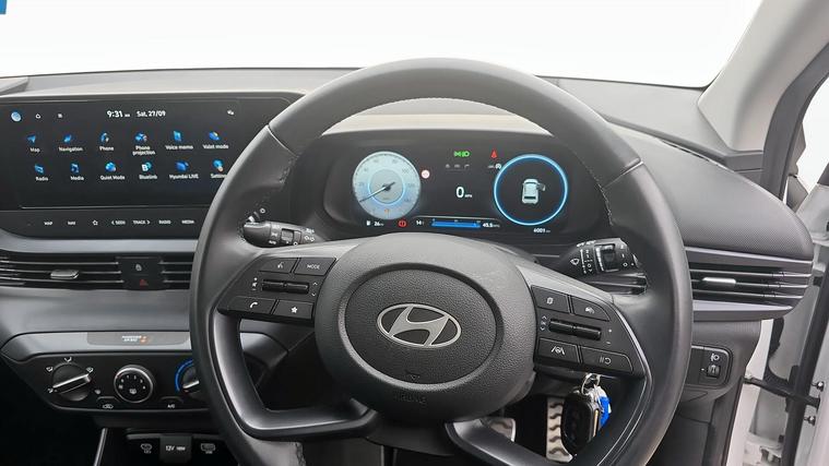 This 2025 Hyundai BAYON T GDi Advance boasts an exceptional provenance, having completed its last dealership service on 12th September 2025 at just 6001 miles, ensuring it is in prime condition. This stylish compact SUV is powered by an efficient 1.0 litre petrol engine, meeting Euro 6 emission standards. With a full dealership service history and a substantial 53 month warranty remaining, this BAYON offers peace of mind alongside its modern design and practical features.The Hyundai BAYON Advance is designed to impress with its impressive fuel economy, achieving a notable 51 miles per gallon. This figure, along with its low CO2 emissions, demonstrates its efficiency compared to other vehicles in its class. The Advance trim level ensures a well equipped and comfortable driving experience, making this BAYON a smart and economical choice for any driver..
