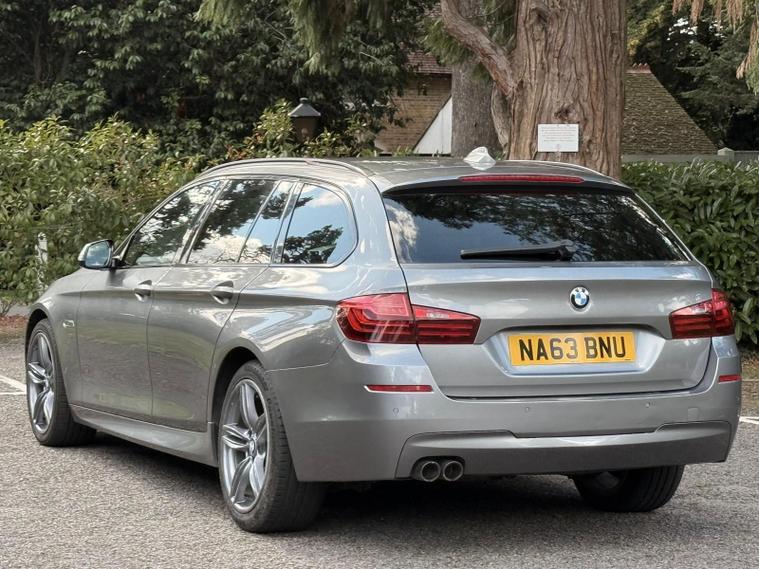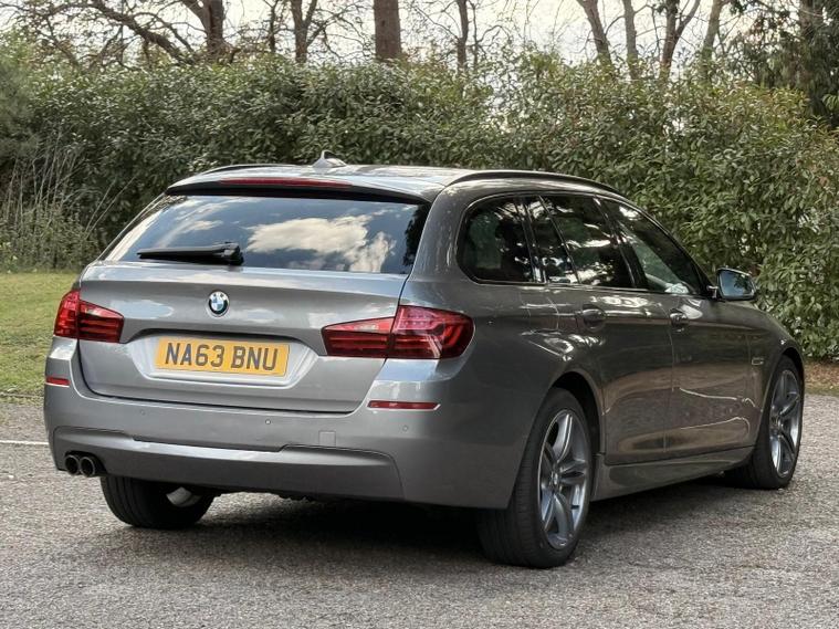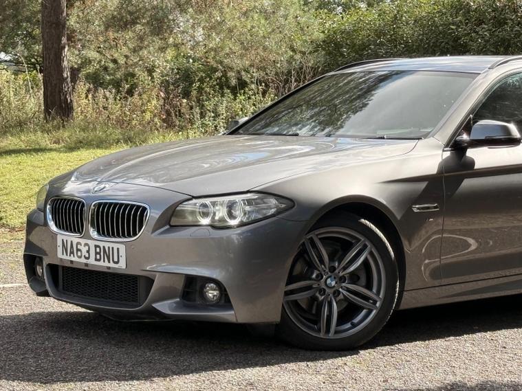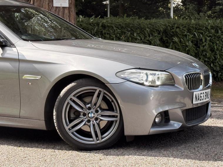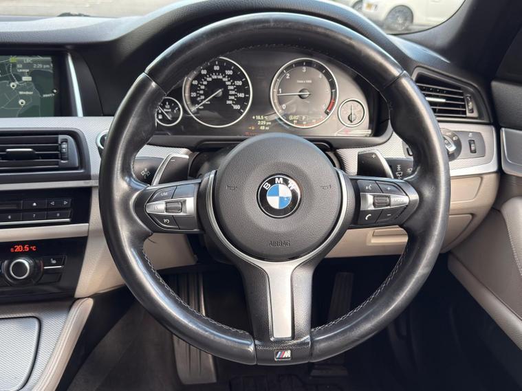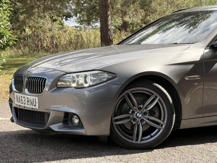 2 KEYS, FULL UP TO DATEB SERVICE HISTORY WITH RECENT SERVCIE AND HEALTH CHECK, EVERY SERVICE INVOICE WITH THE CAR, LEATHER HEATED SEATS, PARKING SENSORS, XENON HEADLIGHTS, SAT NAV, BLUETOOTH AUDIO AND MEDIAThis 2013 BMW 5 Series 520d M Sport is a well maintained example of this popular executive saloon. Powered by a 2.0L diesel engine, this Euro 6 compliant model offers a blend of performance and efficiency. It comes equipped with the desirable M Sport trim, enhancing its sporty appeal. Notable features include Enhanced Bluetooth Telephone Preparation with USB Audio Interface, a Media Package BMW Professional, and the BMW Apps Interface, keeping you connected and entertained. The Automatic Transmission with Gearshift Paddles provides smooth gear changes, and the 19 inch Light M Double Spoke Style 351M alloy wheels add to its striking appearance. You'll also appreciate the generous boot space, perfect for luggage or shopping.The performance of this BMW 5 Series is noteworthy, with a brisk 0 to 62mph acceleration time of just 8.2 seconds, demonstrating its capability. This acceleration figure indicates a more responsive driving experience compared to many other vehicles in its class. The combination of its refined M Sport styling, advanced technology features, and practical attributes like ample boot space makes this 520d M Sport a compelling choice for those seeking a premium driving experience with everyday usability..