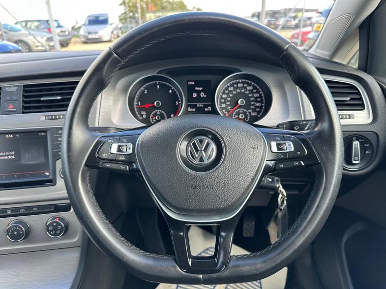 BMC Presenting you a beautiful VW Golf Blue 1.6 that comes with a Full Service History ( 10 service stamps or invoices in the book 8 from main dealer ), Also comes with a long MOT, latest service just been done recently, parking sensors, bluetooth connectivity, The car has two keys and exceptionally low mileage. Interior-exterior in Great condition, Starts and drives very well, No knocks or bangs, Hpi Clear (certificate present), ***3 Months free warranty and 12 Months Free AA breakdown cover included in price. Viewings and test drives are welcome 7 days a week. Please visit our website for similar cars. For any questions please feel free to call our friendly sales team on 01635625157 or what's app on 01635625157This 2015 Volkswagen Golf TDI Match offers exceptional value with its remarkably low mileage for its age. This popular hatchback is equipped with a 1.6 litre diesel engine, meeting Euro 6 emissions standards. You'll appreciate the convenience of Bluetooth audio connection and telephone preparation, allowing for seamless integration of your devices. Manoeuvring is made easier with front and rear parking sensors, providing an extra layer of awareness. For added comfort during colder months, this Golf also features heated front seats.The benefits of choosing this particular Volkswagen Golf are clear when you consider its impressive highlights. Achieving an outstanding 74 miles per gallon, it offers excellent fuel economy, making it an economical choice for daily driving. Its low CO2 emissions further contribute to its cost effectiveness and environmental consideration. Furthermore, the generous boot space provides ample room for shopping or luggage, while its low insurance group rating means more affordable ownership..